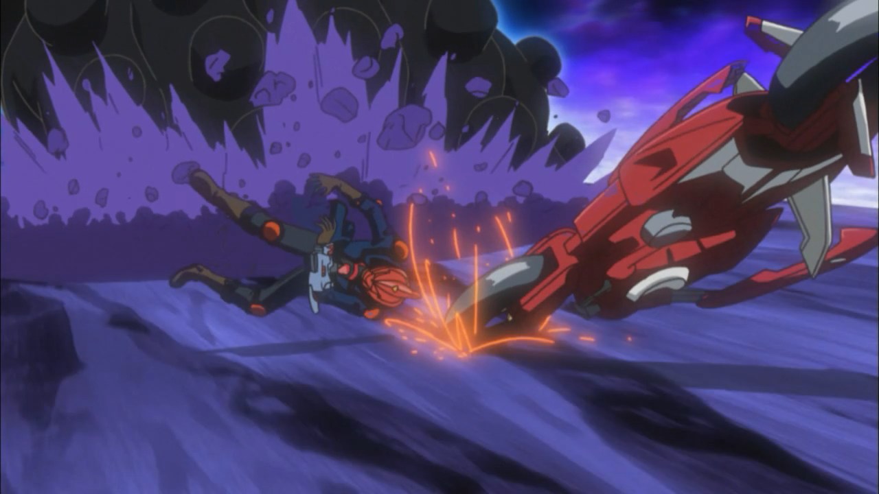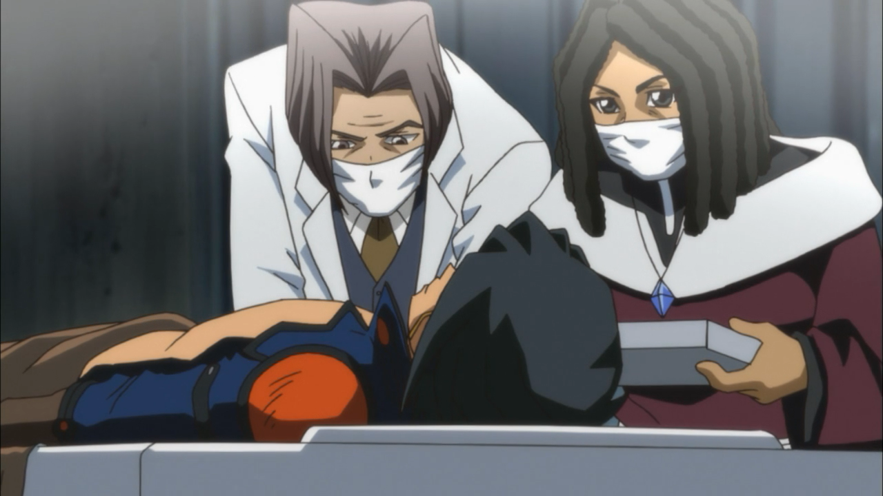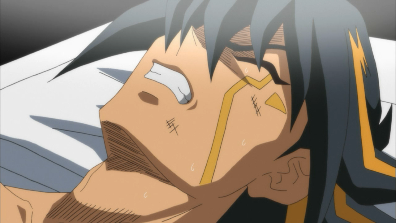 Yusei was pretty close to getting killed himself had it not been for his D-Wheel finally giving out at the last second. Earlier on we saw how it was really taking a brunt from the impacts and it’s thanks to that the duel was called off and Yusei didn’t get crushed by Ccapac Apu’s hand. Actually in hindsight, it looks like Kiryu quite litterally, want to crush Yusei with hands. It started off with a Demon hand emerging over him, and ended with Ccapac Apu smashing the ground around him, but I digress. Although the D-Wheel breaking down saved his life, Yusei was flung from it and suffered a terrible injury by being impaled by debris. Oof, that is a nasty wound. But you know what’s even worse – and no matter how many times I watch this scene, I wince every time I see Crow and the others put him onto his D-Wheel WITH THE DEBRIS STILL IN HIM. OH GOD, IT HURTS JUST LOOKING AT IT. Thankfully Crow took him to Martha’s, where there’s a doctor in the house to help safely take it out and stitch him up. This is certainly among some of the worst injuries Yusei has suffered from so far (though the electrocution and the Marker process certainly remains on top for the worst forms of torture he has gone through).