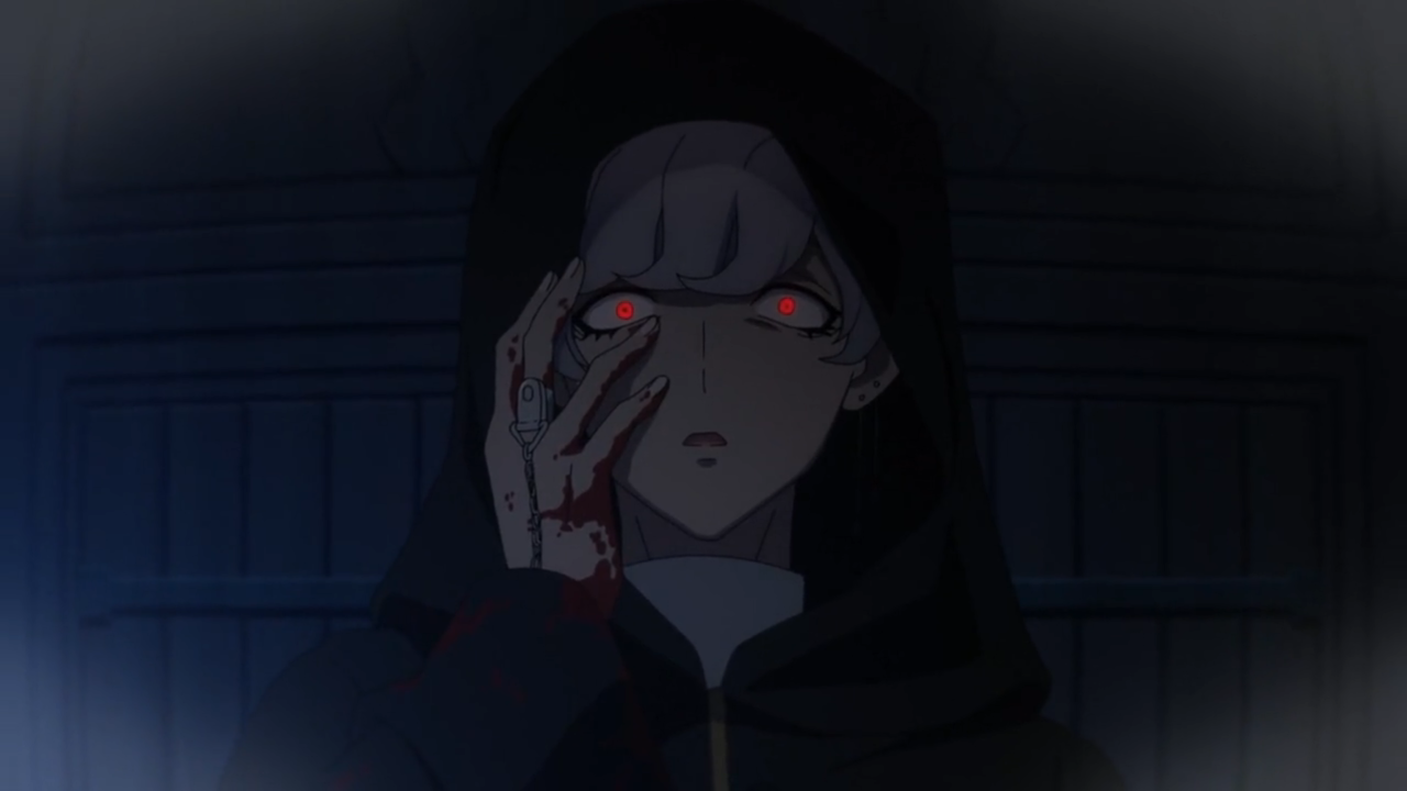 When they were running around Harajuku, I fully expected them to run into other vampires, perhaps those that were busking on the streets. What I was not expecting was a vampire hunting others for sport. Not even a vampire hunter. Just some vampire who took joy in hunting his own kind. Poor random kid who was the prey this time around but thank goodness we had a vampire who hunted vampire vampire hunters (I’m pretty sure that statement is correct, but boy was it a doozy to write). And by that, I mean, hooray for Eve!!! I really enjoyed their song and the animation that came with slaying the other vampire. Even though the moment was stressful, I did think it was quite a bit of fun, even if the lyrics that came through were actually rather sad especially after learning about Eve’s story.
