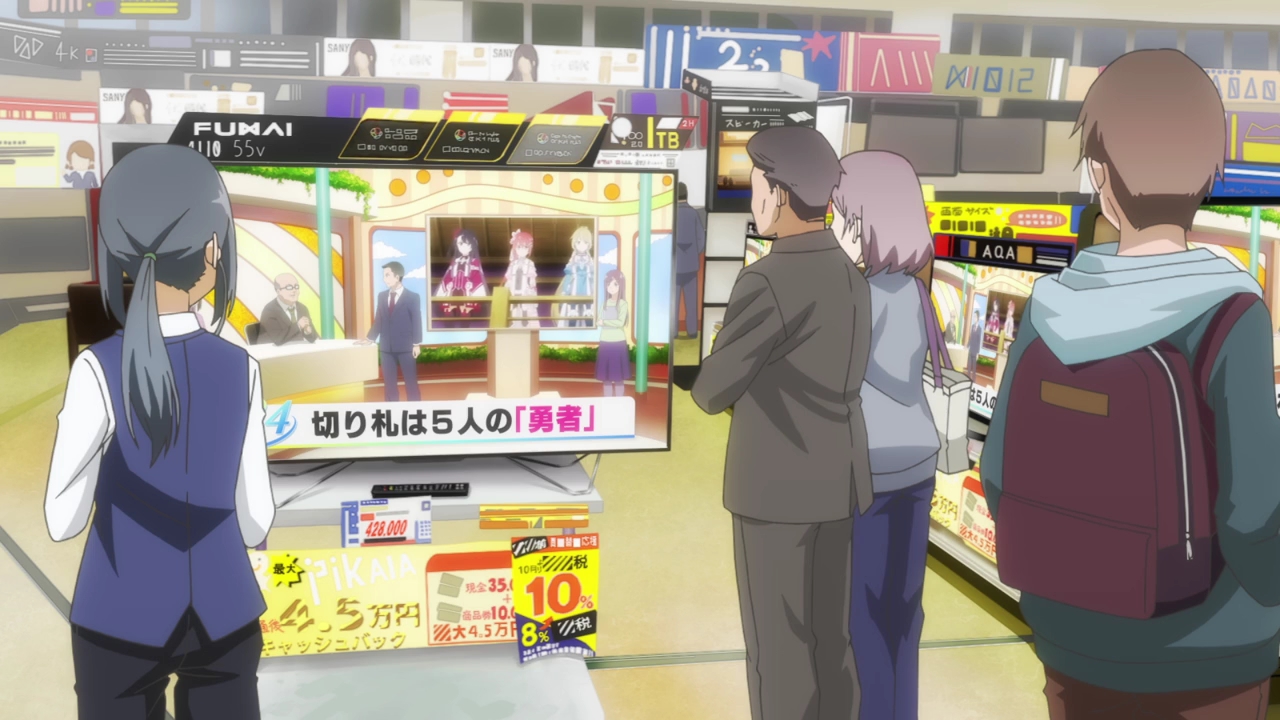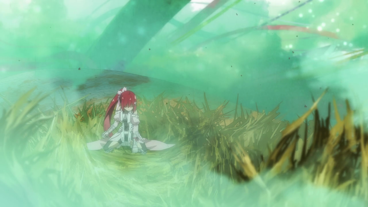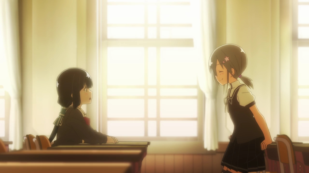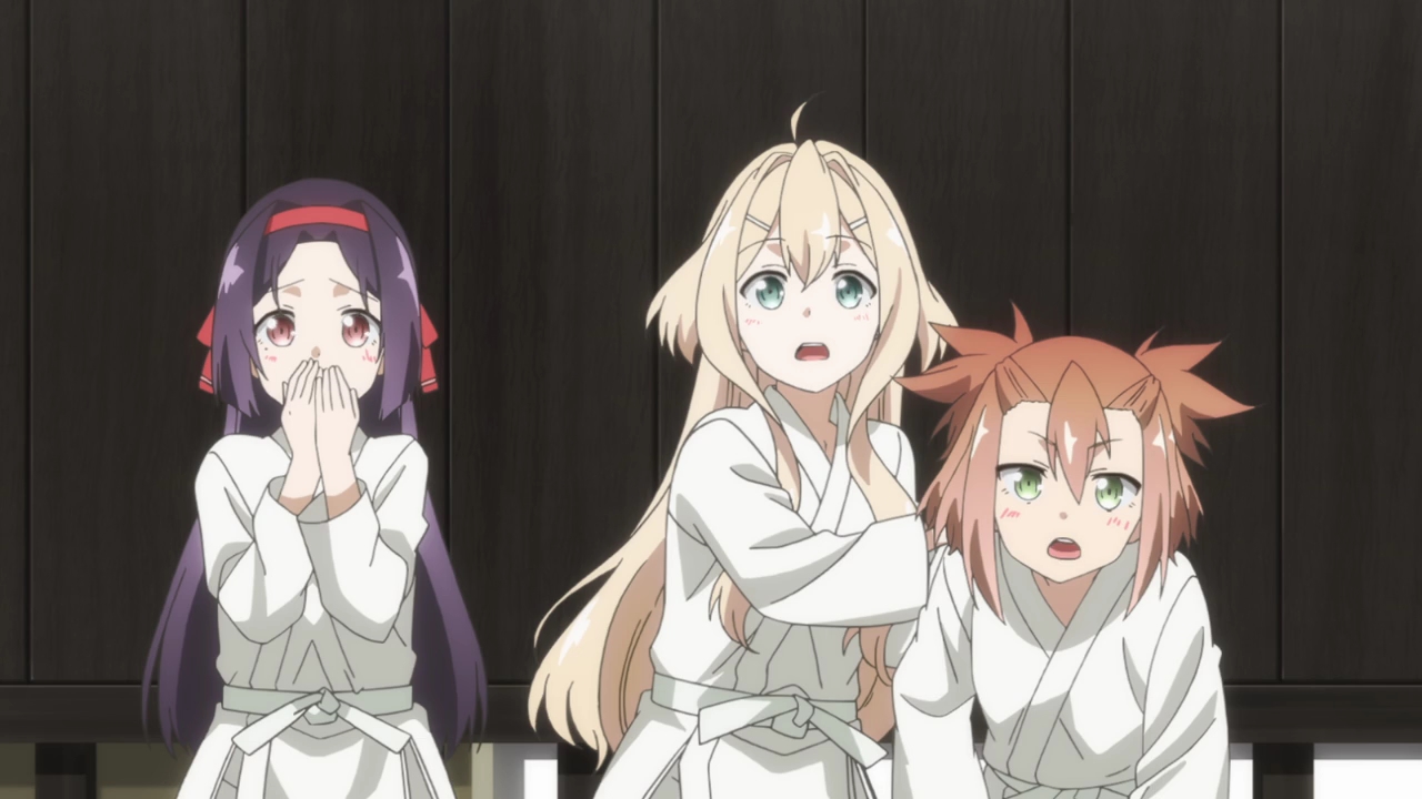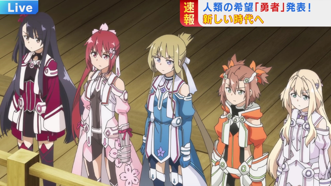I had heard so many good things about the prequel, Nogi Wakaba wa Yuusha, and I thought that if they were made another season of Yuyuyu, it would be an adaptation of that. And now that I’m seeing the snippet that they decided to show us, and the actual story being about the original heroes and the world before it was destroyed, it looks like if it had ever gotten a full adaptation then it would have been amazing. This…I don’t know what this is supposed to be. I feel like a huge chunk of NoWaYu was skipped through and we’ve already lost two characters that we don’t even know so I didn’t exactly feel for them since I’m not attached to them. I did think they were quite cute in the classroom flashback, but I don’t even know who they are. We’re about to be getting some drama with that Chikage girl next time and, again, I can’t really feel anything about it since we haven’t spent time with these girls. They seem like really cool characters and this whole story seems amazing, but I feel nothing! I do think the rage and despair of Yuna’s ancestor, Takashima, was done really well as well as Chikage’s anger at the end. And Takashima almost killing herself was brutal, but the more I watched the more disappointed I was.
