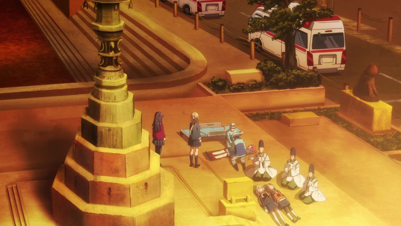 Not much to say as half of the episode was a battle. We also got to see an in depth look of Togo’s side of things when it came to the fire offering and how her sacrifice would be enough to satiate the gods, so Aya ended up being saved from that fate. She accepted it rather quickly, as she pondered over her “sins” such as putting her friends in danger by destroying the wall, letting in the Vertex, many things, and forgetting about her friends and Gin.