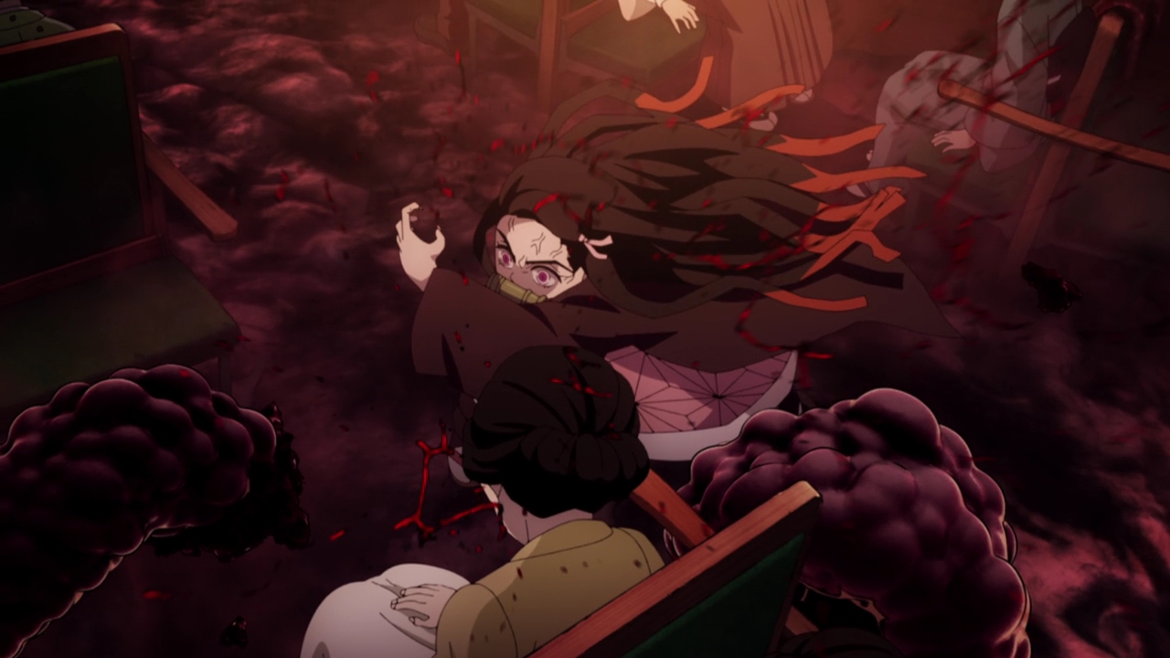 Tanjiro just had a lot of good moments in this part. The fact that he was breaking Enmu’s sleep attack over and over by committing suicide each time is insane, but another thing I really appreciated from this episode was when Enmu showed him a nightmare rather than a blissful dream. In most anime, this would take up a large chunk of time where the main character would succumb to the nightmare. They could have made it where Tanjiro was paralyzed in guilt and self-loathing as his family, covered in blood, blamed him for their deaths. It was even worse when Enmu brought in Tanjiro’s father too. So Tanjiro could have easily fallen into despair, but instead his love and trust in his late family is SO strong that it woke him up and he was able to take Enmu down. And I just appreciate that so much. His family ties were so strong that the nightmare didn’t affect him, and we didn’t waste any time with that trope. I just appreciate that love and confidence in his family, and it just makes me so happy.