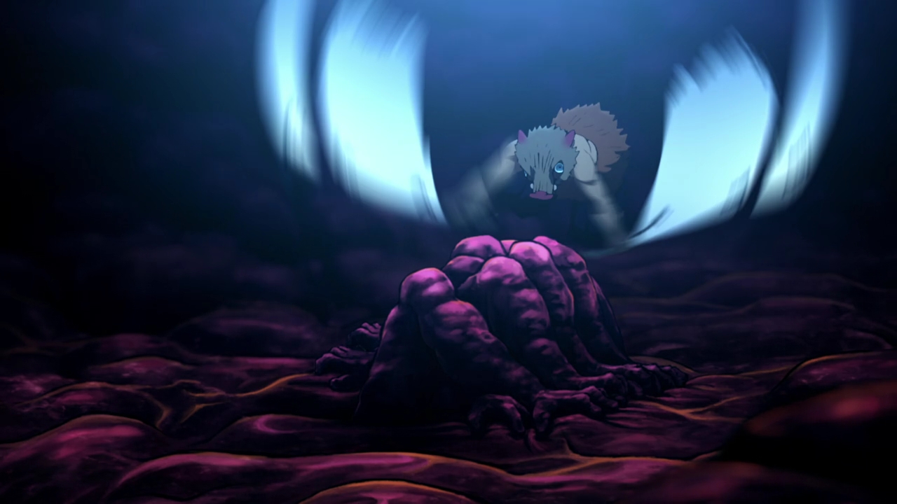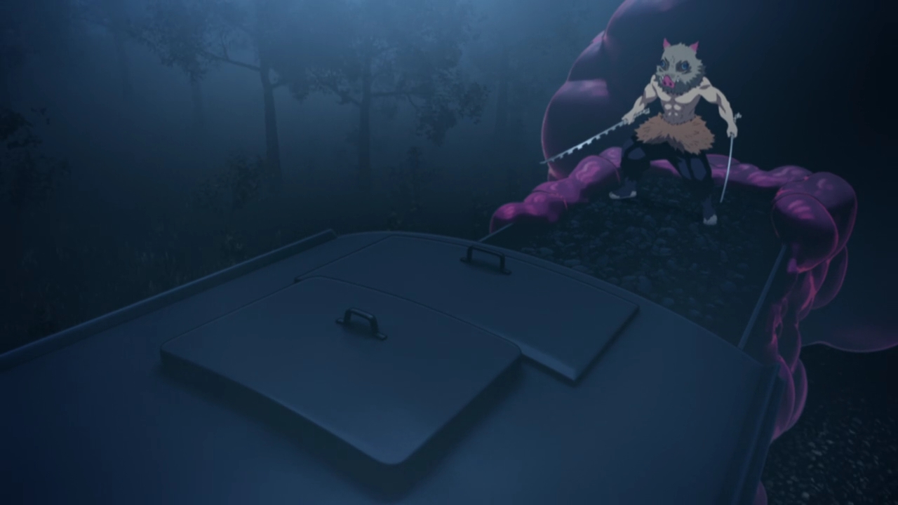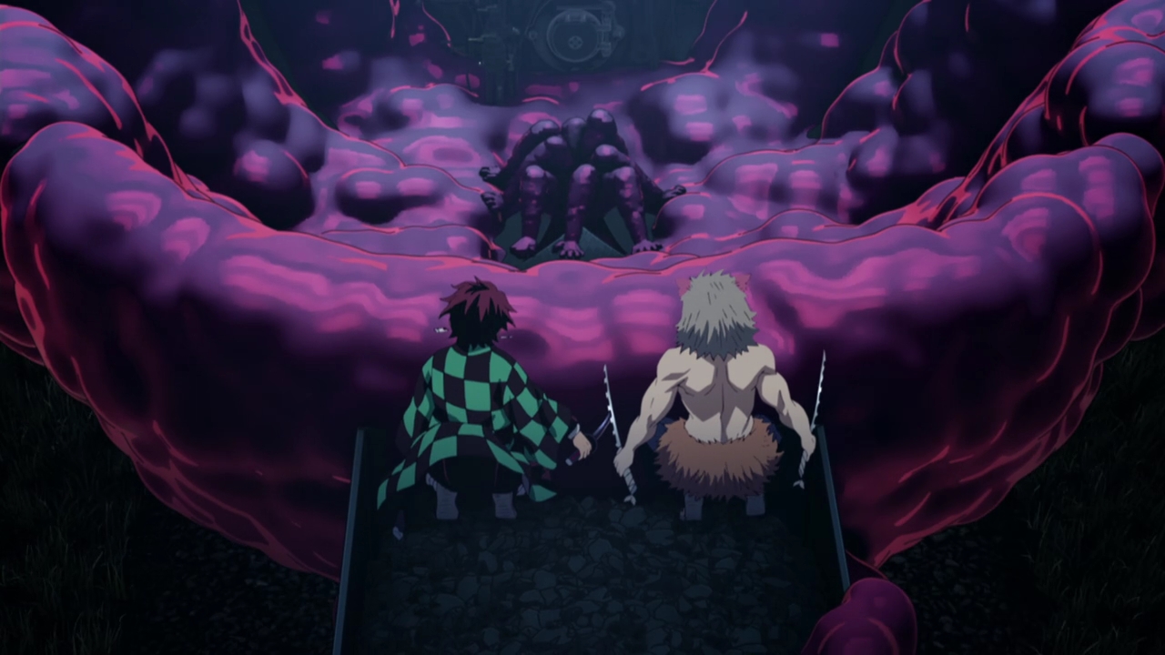 The actions scenes were fun and all, but this episode (and more moments in the next couple) shows how much Inosuke has grown. One thing I was really annoyed with Inosuke in the first season was how obnoxious and selfish he was. He wouldn’t listen to anyone else and he would just go things his own way and make everything a competition, even when the timing was terrible. But as time has gone on, and after Inosuke was very humbled after the spider arc, he’s still his loud sort of selfish self but he’s way more cooperative. He really does care about Tanjiro and the others, and he’s definitely a huge fan of Rengoku as well. He still sees himself as a leader and touts his strength, but he definitely had no issues with teamwork with Tanjiro this time. Actually, their dynamic is hilarious. Tanjiro is like a father humoring his child with how he kept going along with Inosuke’s quips. “You didn’t come to my rescue!” “Right!” “That’s a good plan, I’ll praise you for that.” “Thanks!” It’s just so funny, it was one of the things that kept me laughing when I watched the movie for the first time. Probably because Tanjiro had a lot of younger siblings, he knew how to deal with childish behavior like this. Just let Inosuke have this moment, okay? At least they make a great pair now.