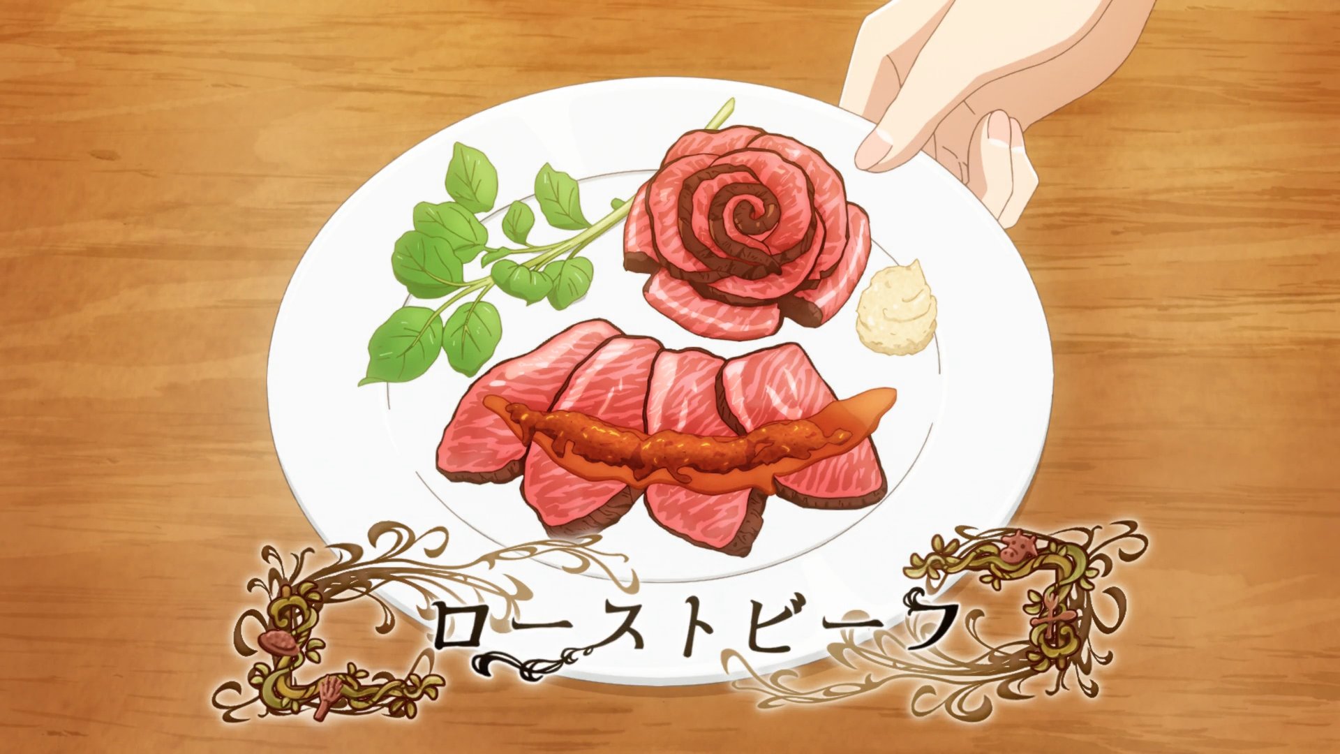 The dish for the vampires was Roast Beef and Grape Liquor. To make it all the more appetizing, they even shaped some of the roast beef into a rose shape. As much as I love roast beef, the dish didn’t really caught my attention as I’m more interested in hearing about the vampire lore. I wonder how it’ll be if Rorona found out that Kuro is actually a Black Dragon. (^w^)
