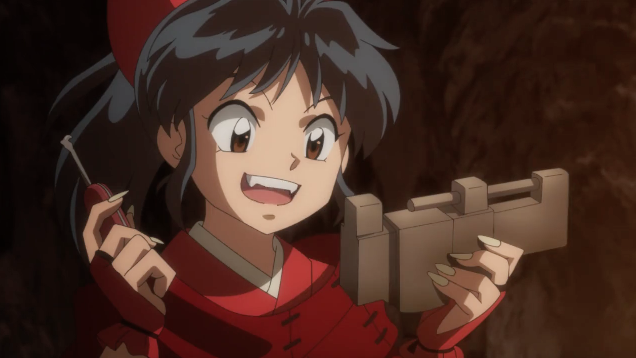 The episode also revealed that Akuru, the demon that Kirinmaru was looking for to travel through space and time, somehow only visible to certain people. To be precise, only people from Sesshomaru’s clan could see Akuru, or so that’s what Kirinmaru assumed. But if I remember it right, Jaken could also see Akuru in previous episodes, so it doesn’t seem that bloodline played a role in this. Maybe there’s a specific condition in how to see Akuru. Being “favored by the wheel of time” that Rion mentioned seemed to be one of such conditions.