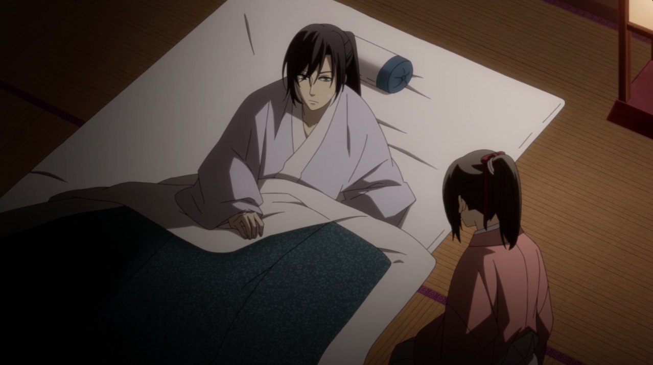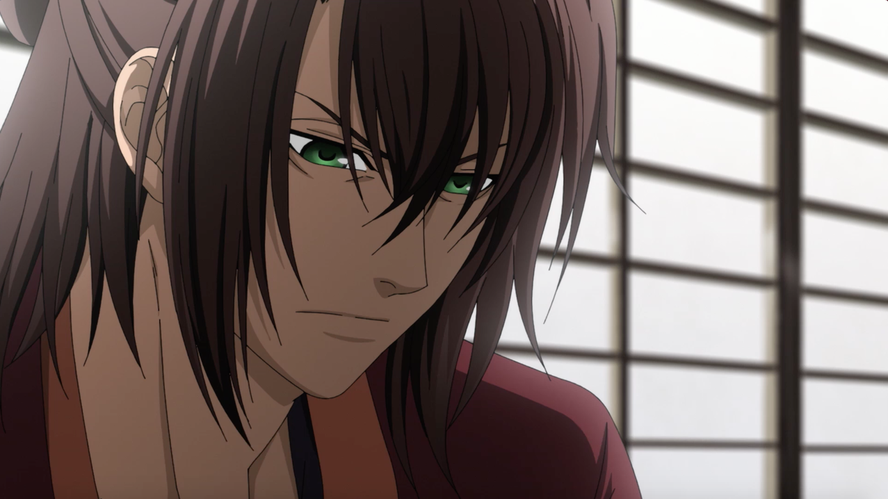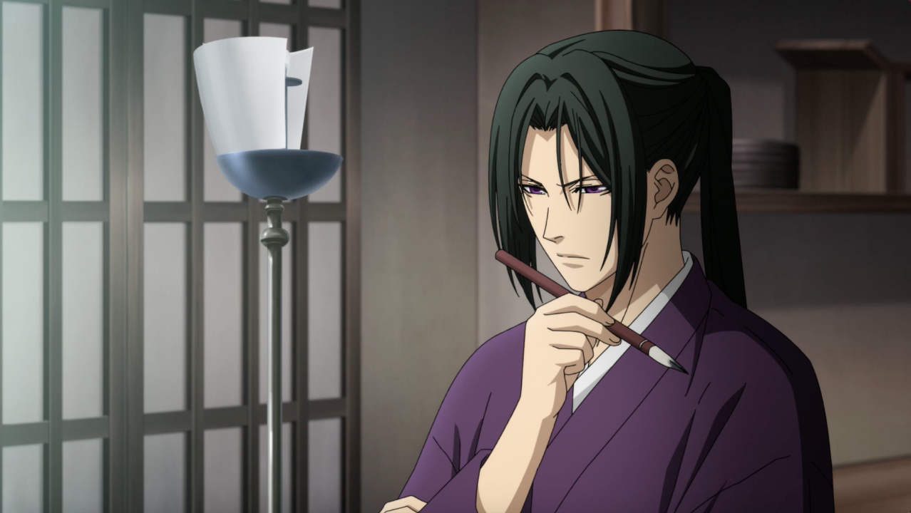 The scene after the OP immediately showed Chizuru’s interaction with Hijikata while he’s in the middle of writing his haiku. It’s very cute how Chizuru blushed and tried her best not to sound rude about Hijikata’s hobby, and Hijikata trying to hide his love for this hobby of his, as he knew he was bad at it yet couldn’t help but continue writing because he loved it. This short but sweet moment was enough to show the kind of man Hijikata was: Cold on the outside, but warm on the inside. When Chizuru went missing, he prioritized in keeping their manpower to protect the Shogun as they were ordered to, placing the search for Chizuru and Sakai as secondary. Despite that, he didn’t stop the other captains to look for Chizuru and Sakai, and remembered his last conversation with Chizuru prior, showing how much Hijikata was actually worrying for her well-being. His position as vice-commander didn’t let him to show his worry. Honestly, I felt bad for Sakai here because the captains mainly only mentioned Chizuru and hardly mentioned him even though he also went missing.