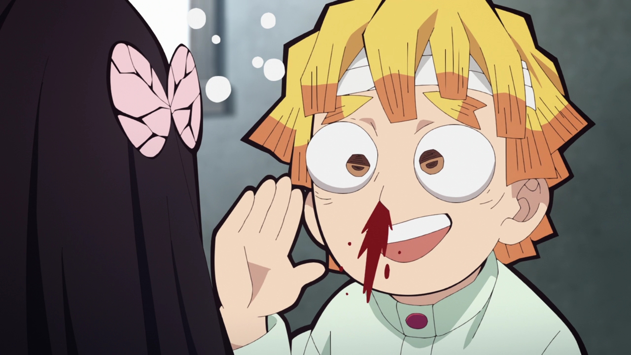 The best part of the premiere was definitely the first half after Muzan’s scene, we head back to the butterfly mansion where the boys are recovering. Zenitsu gives a quick run down of everyone’s emotions during all this and as he sneakily steals some buns from the kitchen to cheer Tanjiro up, we find out he’s missing.