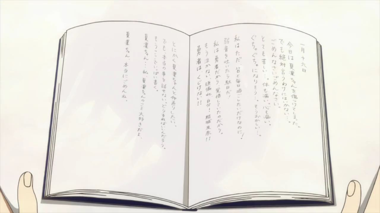 The girls meet up after not seeing each other for awhile, and it comes off as really awkward at first. An awkward conversation soon then turns into a full on fight as Mebuki gets angry with Karin about her attitude. It’s your typical “stop crying, that won’t get you anywhere!” type of fight. And we know Karin turns around in the end, along with the other girls. I don’t think (or I don’t remember) whether or not Mebuki (or a “friend”) was ever mentioned in her turning things around so I’d like to see at least a mention of it whenever there’s time for it. I’m not even sure at this point.