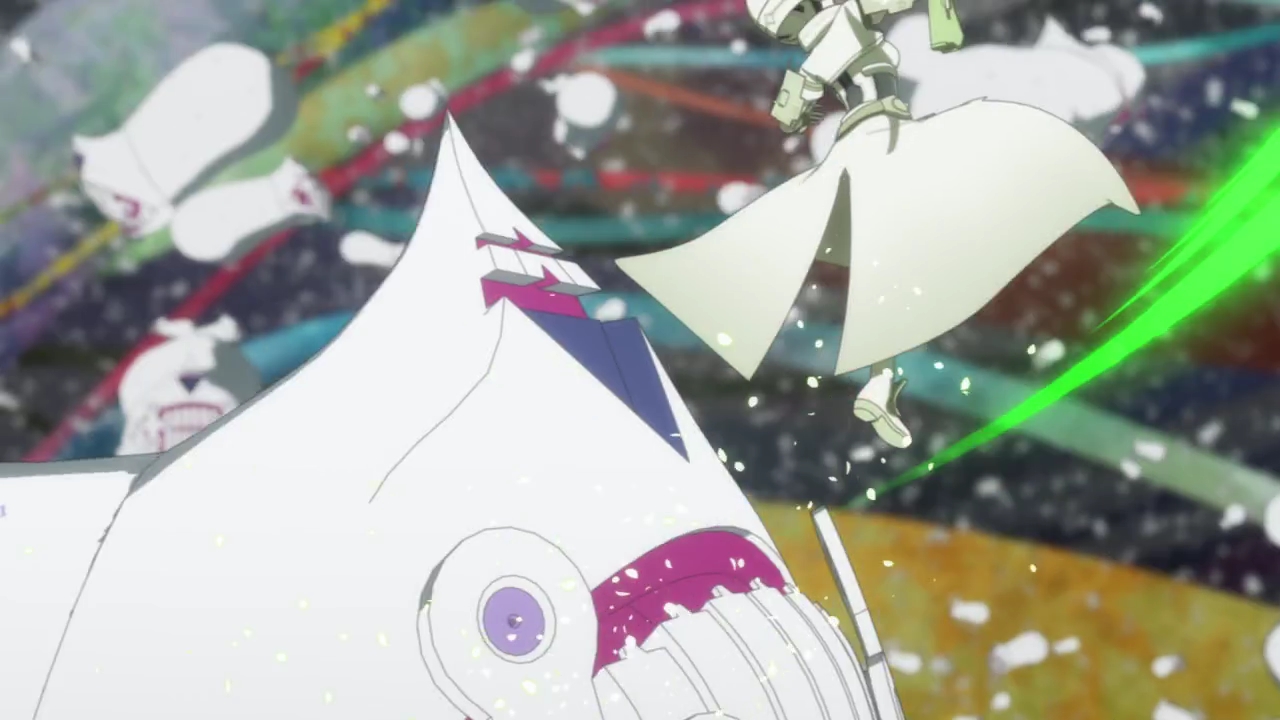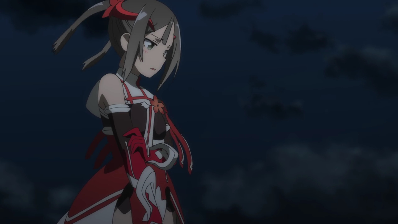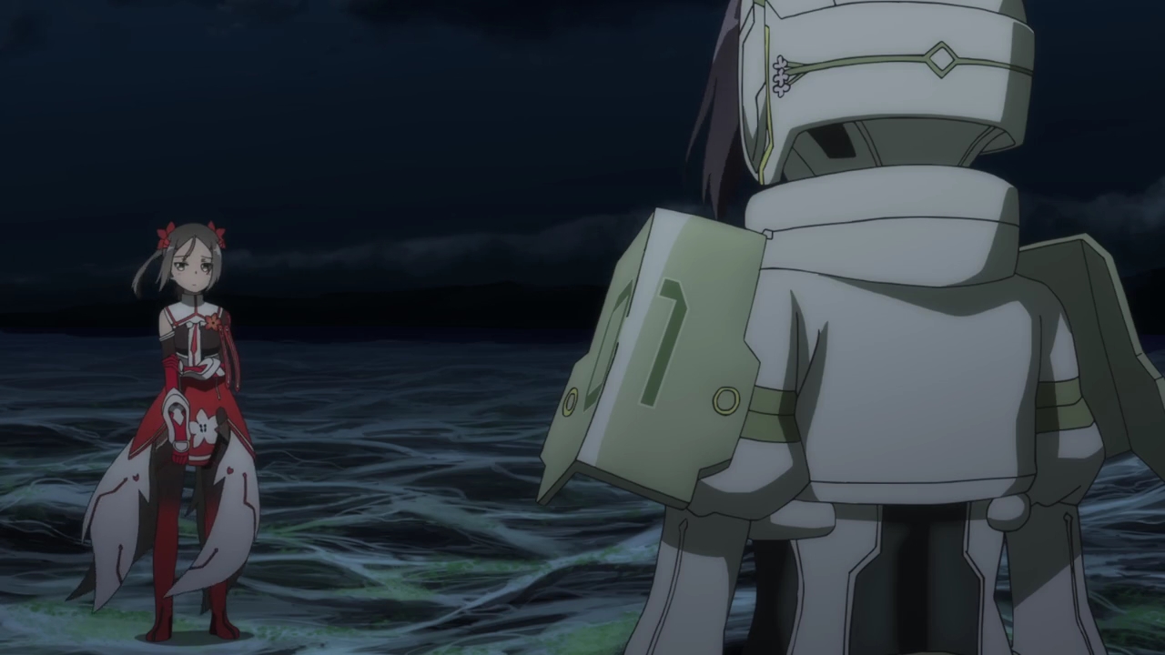 The only other significant thing that happened this episode was Karin and Mebuki’s meeting. We spend a little more time with Karin after her “argument” with Yuna as she laments and cries about it. She transforms and crosses the wall to yell at the gods, only to notice the Sentinels’ ships. That’s fine and all, she’d be able to see those. But HOW did she SOMEHOW notice Mebuki specifically from so far away?! I hate it when anime does that. >_>