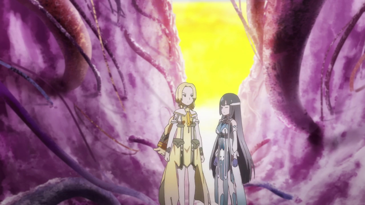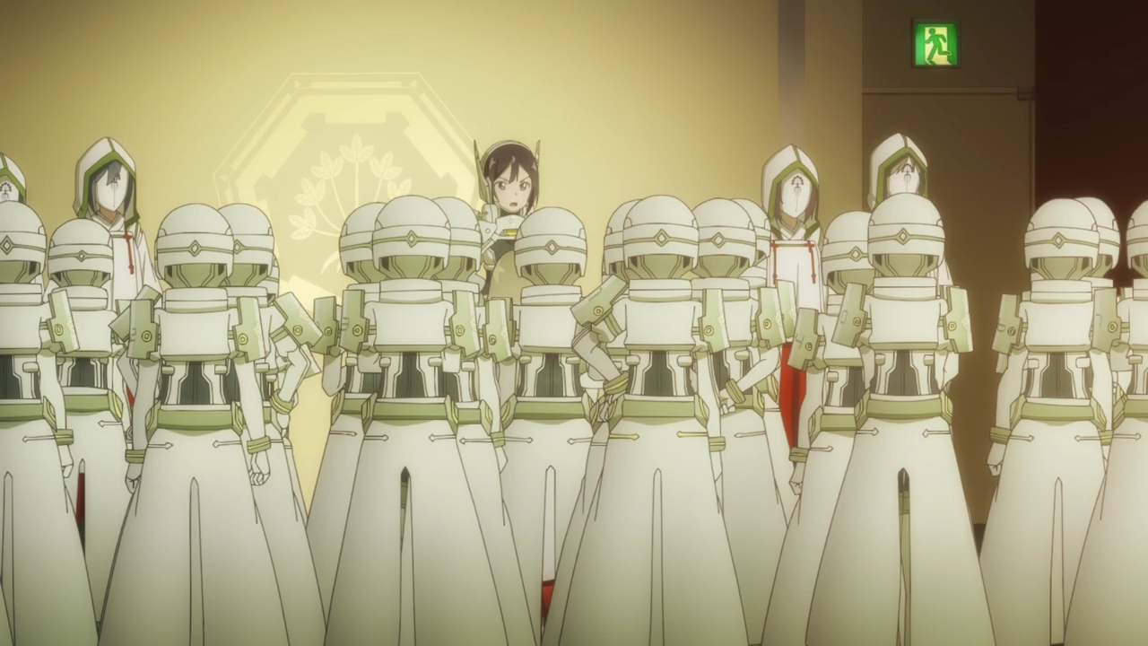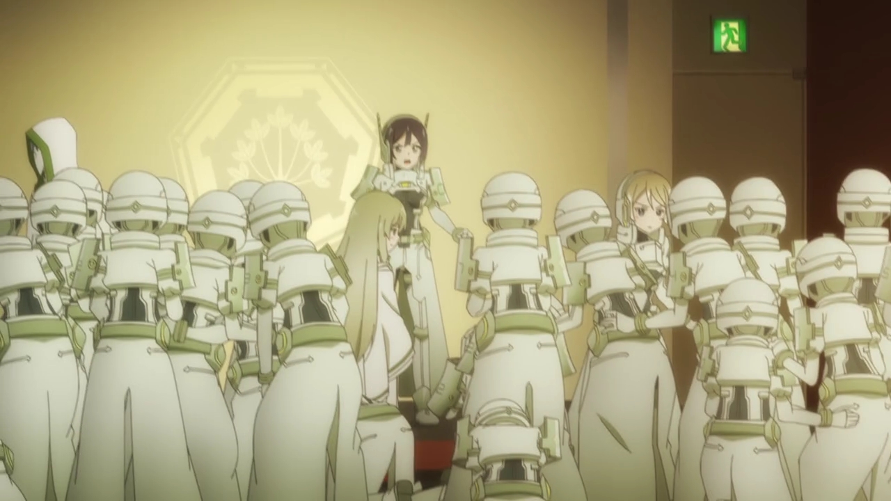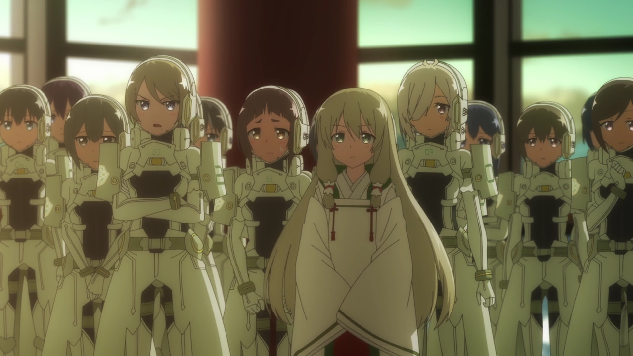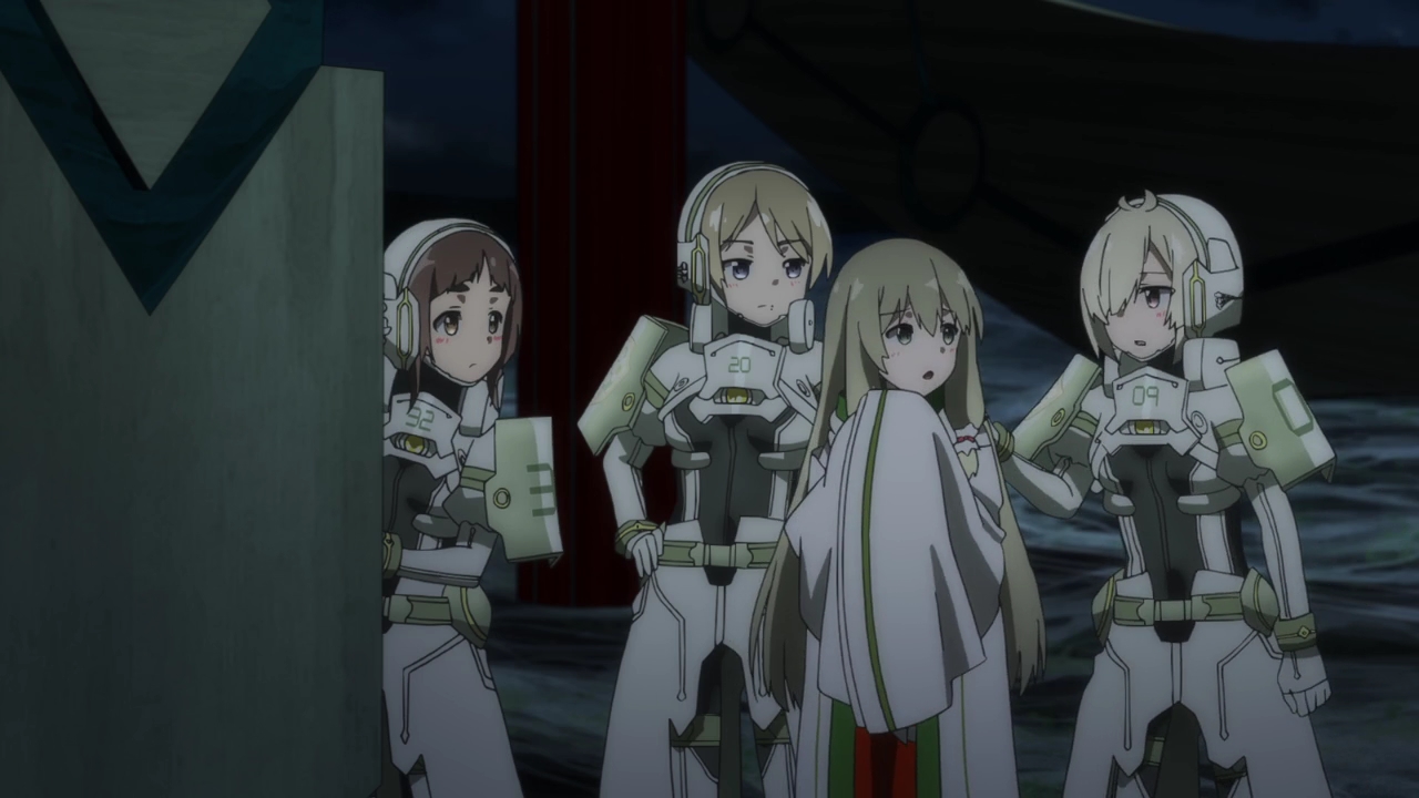 Like we saw from last episode, the Sentinels were called in for their final mission to be announced. We know it to be the part of Yuusha de Aru where Yuna must go through the Shinkon ceremony. It’s revealed that the Sentinel’s last mission is to defeat the Vertex while the ceremony is happening so it’ll go without a problem. We also find out that the tower “The Tower of a Thousand Views” has a cannon that they will end up using on their enemies and it’s imperative that they use it at the right time as they can only use it once.