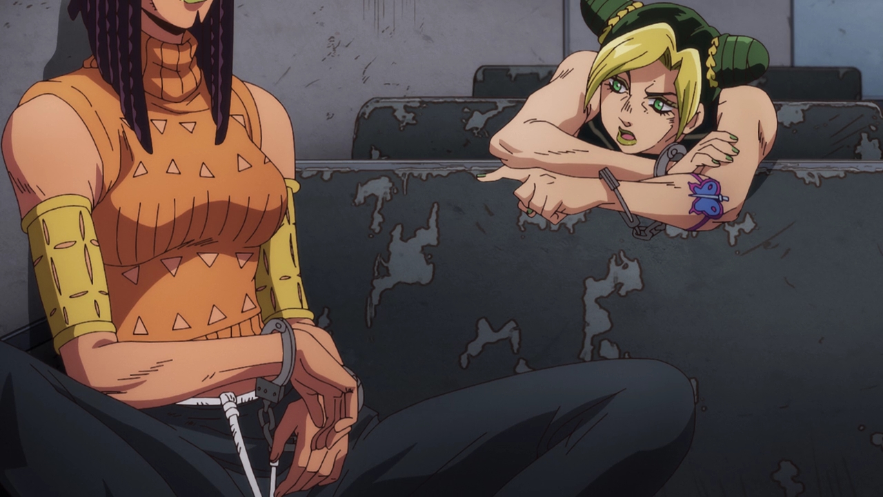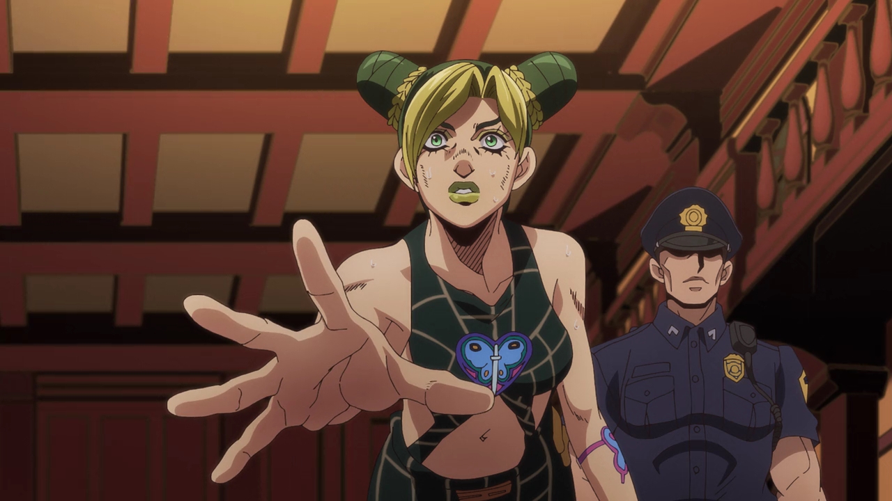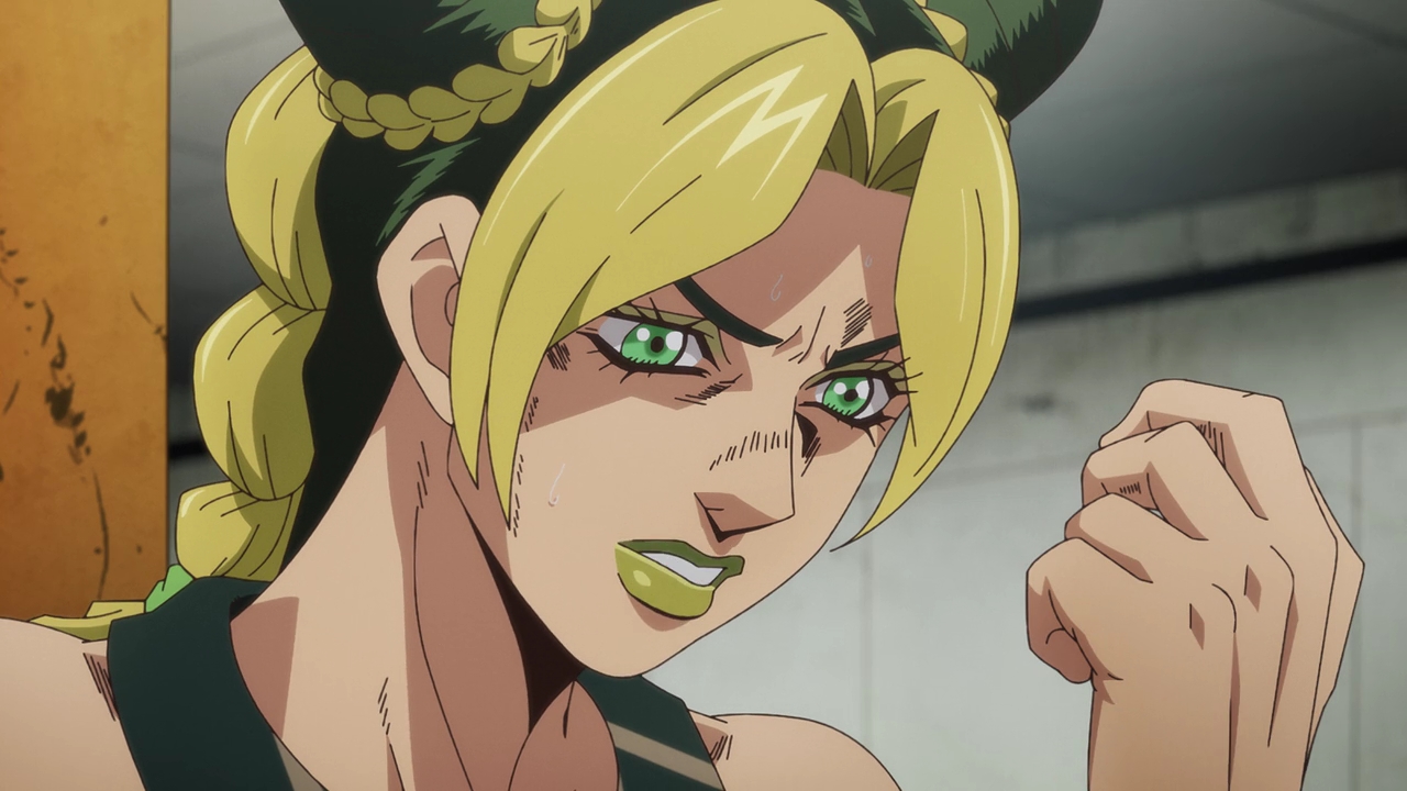 Admittedly, this is probably the most bizarre of the Jojo parts (that I’m aware of). The Stand abilities, the characters, the character designs like Jolyne’s attorney, it’s all just very WEIRD. Araki really went all over the place with the designs and basically everything else, but I really love Jolyne’s design. She looks so cool but so cute at the same time, and David Pro again is just killing it with the animation and style. It’s very reminiscent of the manga but also adds that colorful flair.