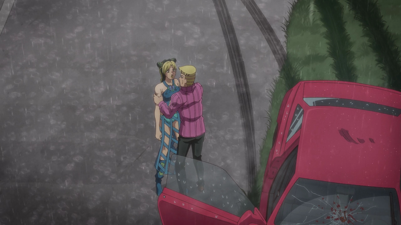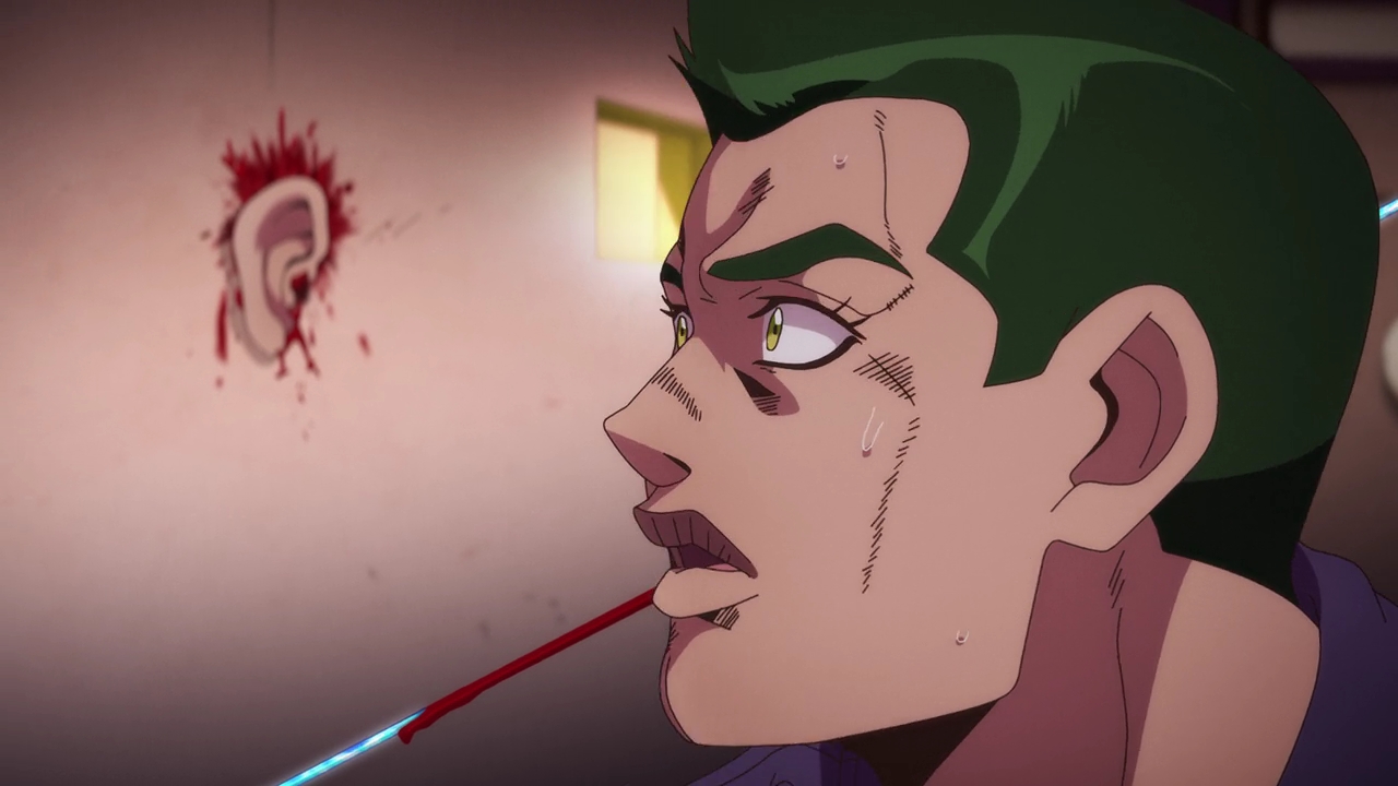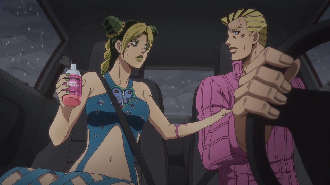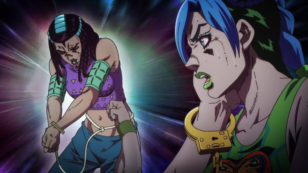 Admittedly, this is probably the most bizarre of the Jojo parts (that I’m aware of). The Stand abilities, the characters, the character designs like Jolyne’s attorney, it’s all just very WEIRD. Araki really went all over the place with the designs and basically everything else, but I really love Jolyne’s design. She looks so cool but so cute at the same time, and David Pro again is just killing it with the animation and style. It’s very reminiscent of the manga but also adds that colorful flair.
