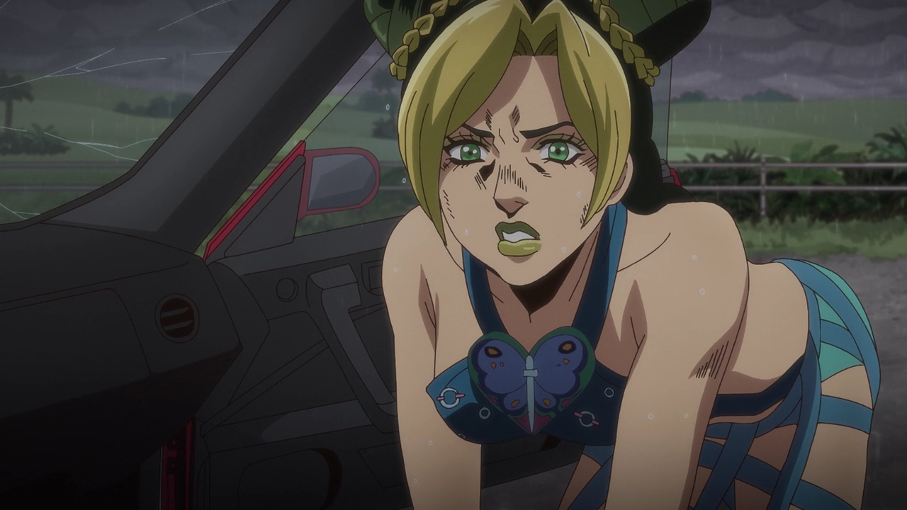According to my manga list that I haven’t updated in a very long time because I never read manga, it’s been 5 years since I’ve read Stone Ocean. Contrary to popular belief in the fandom, despite its one glaring issue that I think all Jojo fans agree with when it comes to the story, Stone Ocean still is my favorite Jojo part. It’s definitely the most fun I had when reading the JJBA manga, what with its different story setting, it’s cast of weird characters, the way the story circled back to the Joestar family, and of course our first female Jojo, Jolyne. And I just adore Jolyne. So I was hoping that Stone Ocean one day would get its anime adaptation. Things looked bright when Diamond is Unbreakable got announced, and I felt pretty confident when Golden Wind got its adaptation too. And here we are, and I am LIVING.