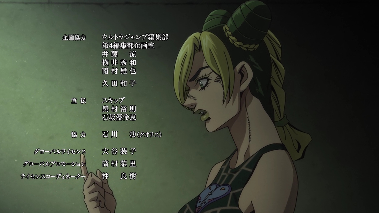 One last thing I want to note, is Jolyne’s voice actress Ai Fairouz. I had been so used to Miyuki Sawashiro voicing Jolyne in the video games so I had wanted her to voice Jolyne again for the anime, but just like with the previous Jojo’s parts the cast was recast yet again. But learning Ai Fairouz’s story, of her being half Japanese/half Egyptian, learning Japanese through JJBA and always having such an attachment to Jolyne ever since she discovered the series when she was younger. Her dream to one day voice Jolyne…and her dream coming true. It’s such a sweet and unbelievable story and I’m so glad that she’s voicing Jolyne, and she’s doing an amazing job. I’m proud of her and of her up-and-coming seiyuu career!