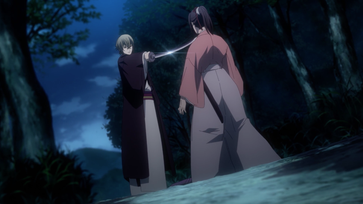 I have mixed feeling about Kazama, Sen, Sano, and Heisuke’s role in the episode. I was grateful that Kazama saved Chizuru and ruined Kaoru’s plan to take her away, but as I said above, his presence also caused Okita’s opportunity to shine to disappear. Instead of being the one who saved Chizuru, Kazama could’ve became an obstacle in some way and added salt to the wound by pointing out their failure in protecting Chizuru. But it didn’t mean I don’t like Kazama being there. It’s still satisfying to see Kazama easily saw through Kaoru’s disguise and even best him. Unfortunately, his confrontation with Kaoru was too short. I had expected Kaoru to put up more fight.