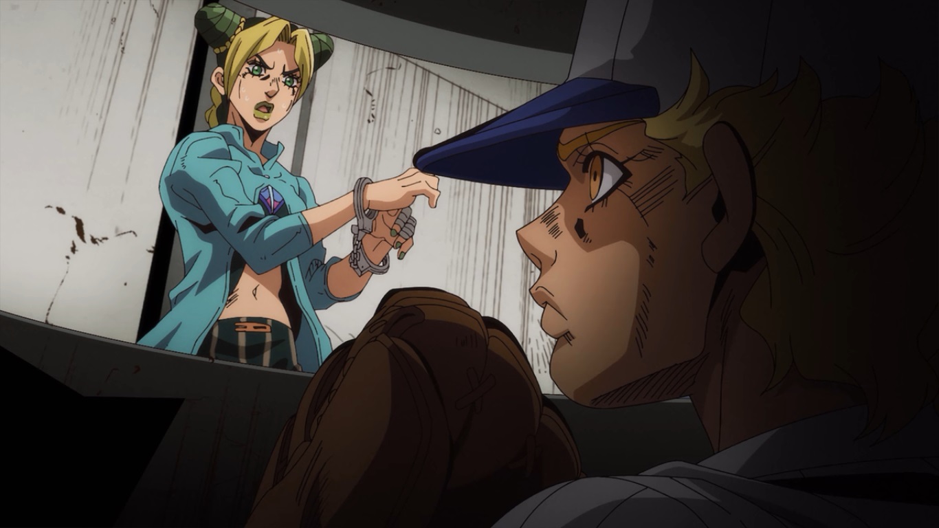 It’s great seeing Jotaro back again, even if it’s not in the best of circumstances. His relationship with Jolyne is obviously really strained and awkward, and hostile on Jolyne’s side. And knowing that Jotaro wasn’t really in her life, it’s understandable that she feels that way. Their dynamic and Jotaro’s explanations of events kind of parallels the beginning of Stardust Crusaders when Joseph explained the Joestar and Dio grudge and Jotaro just not having any of it. Jotaro and Jolyne’s similarities just continue to shine, even through their strained relationship. And while Jotaro may not have been in Jolyne’s life, he’s here for a reason and it’s to save her. And there’s still a lot to unpack here.