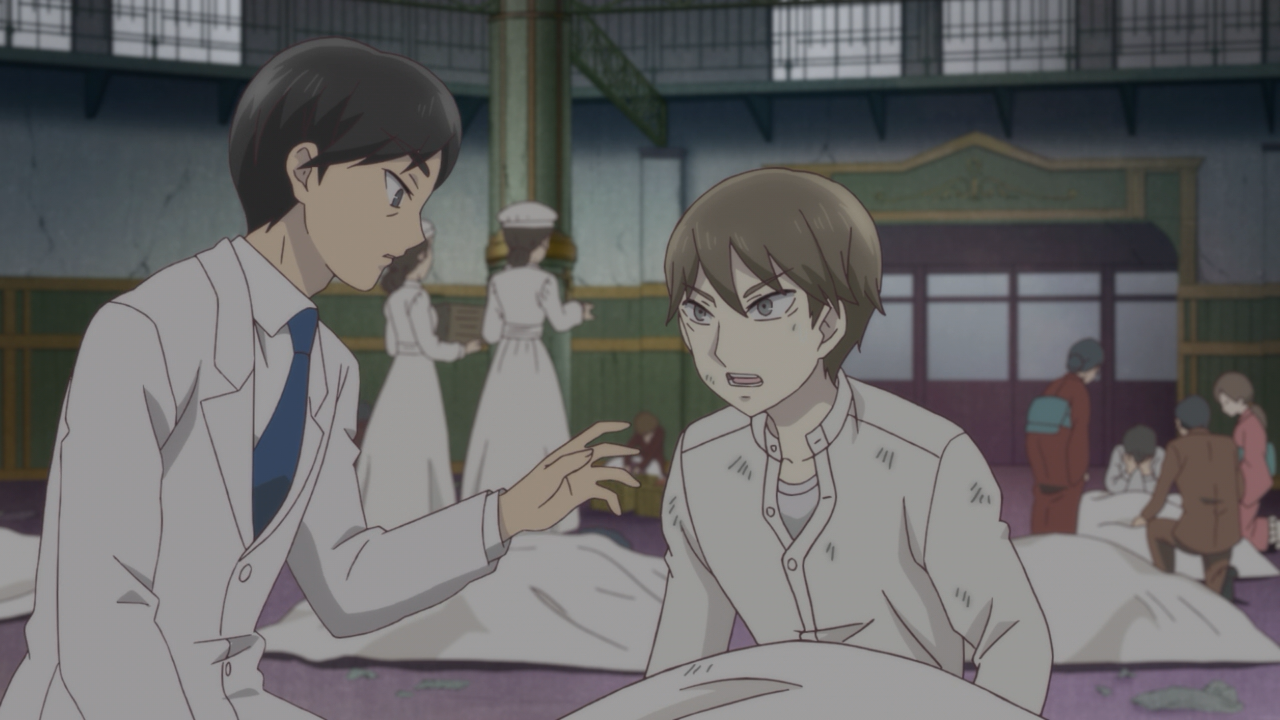 Perhaps the biggest surprise though was to see Tamahiko’s father show up at the clinic in attempt to get their uncle to prioritize taking care of the eldest son Tamaki who had gotten wounded from the quake. Frankly nobody wanted anything to do with Tamahiko’s father, much less his own brother Tamasuke who went as far as to cut ties with the Chiba family (good on him). His brother is truly a hypocrite considering Tamahiko is dead to him, but he’ll still expect his brother to prioritize his family when it’s convenient for him. Truly, the audacity. We actually saw just how shitty he is when Yuzuki was looking back at the events leading up to how she met Tamahiko. She actually met his father in the car on her way there, and realized then that this man is utter trash, recognizing what kind of shitty household Tamahiko must’ve been raised in.