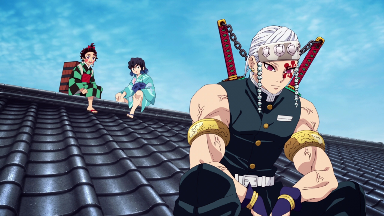 Again, Inosuke is just growing on me a lot this season. I’m loving his growth, but his relationship with Tanjiro is always so fun to watch like back in the Mugen Train arc. The two of them really feel like brothers, and they just bounce off of each other so well in conversations. Also Inosuke just slapping Tanjiro over and over basically proves he really is the little brother in this relationship constantly throwing a tantrum and Tanjiro just trying to live. But the funniest part from their conversation on the roof was the fact that Inosuke, out of nowhere, explains to Tanjiro what rank they are and the fact that they can see what ranking they are and the Wisteria Flower Engraving, which is checking your rank by calling out for it on their hand. It was so hilarious simply because this is Inosuke we’re talking about. This should be something Tanjiro should know! And even though he can’t even remember Tanjiro’s name, Inosuke can basically recite a page from the Demon Slayer Corps Handbook like it’s nothing and it’s the funniest thing. I guess it goes to show that Inosuke really does care about being a Demon Slayer and takes it seriously, but it’s still hilarious.