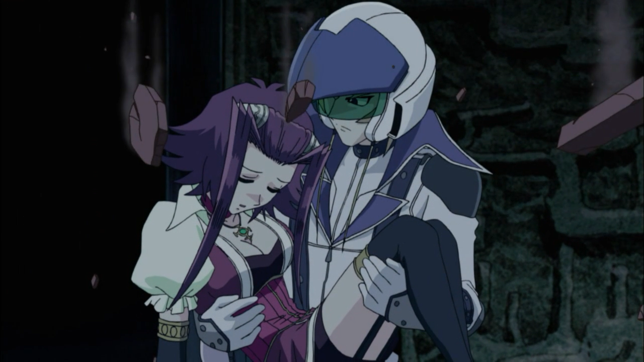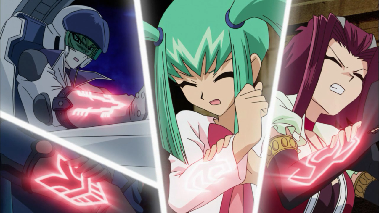 And you know when I said Carly died and wouldn’t be able to share any dirt? HAHA! Well, she was dead for 0.2 seconds before being revived by the power of Darkness to inflict revenge against Divine. Oh, so sweet revenge, and looking better than ever. Honestly Carly freaking rocks that Dark Signer looks. Her Fortune Fortune Fairies’ fresh new designs are also much better than the originals (which were cute, but these design are so much better). It was rather pleasing to see seeing Divine tremble in fear and get a taste of his own medicine by tenfold by the one he shamelessly murdered. Though I’m not gonna lie, it was rather poetic to see him fall like that. That said, we didn’t actually see whether he’s truly dead or not. He did allude that he is able to use his psychic powers outside of duels, which may contribute to his survival. Otherwise, it’d be pretty hard to see him survive that, but I digress.