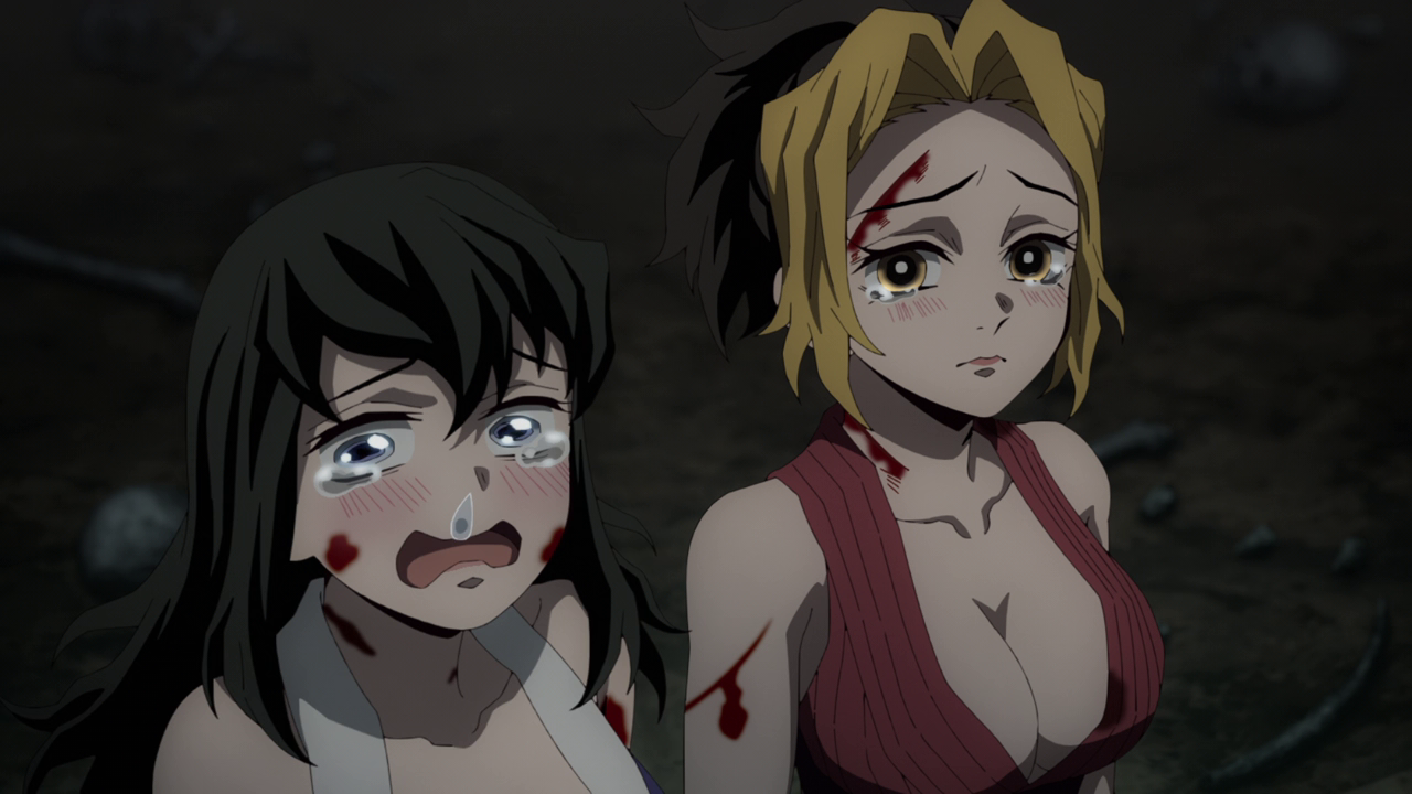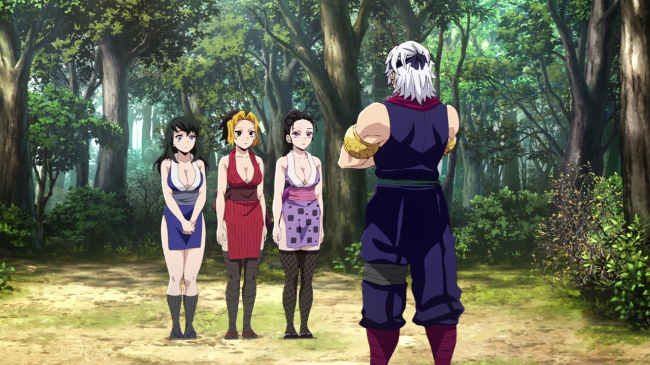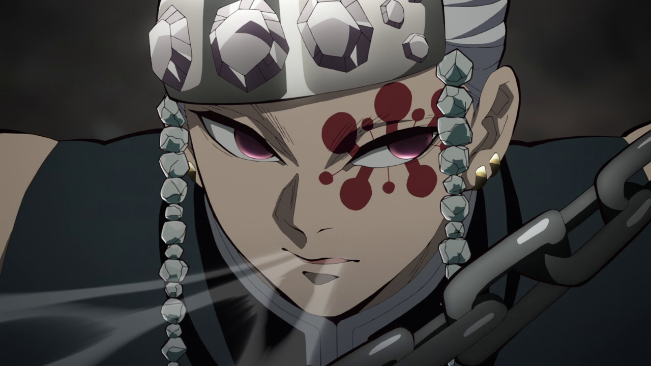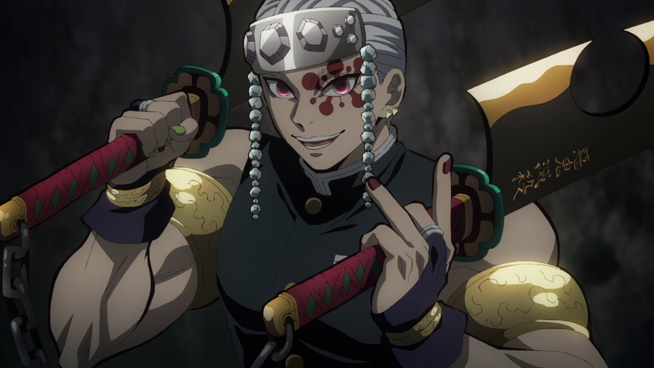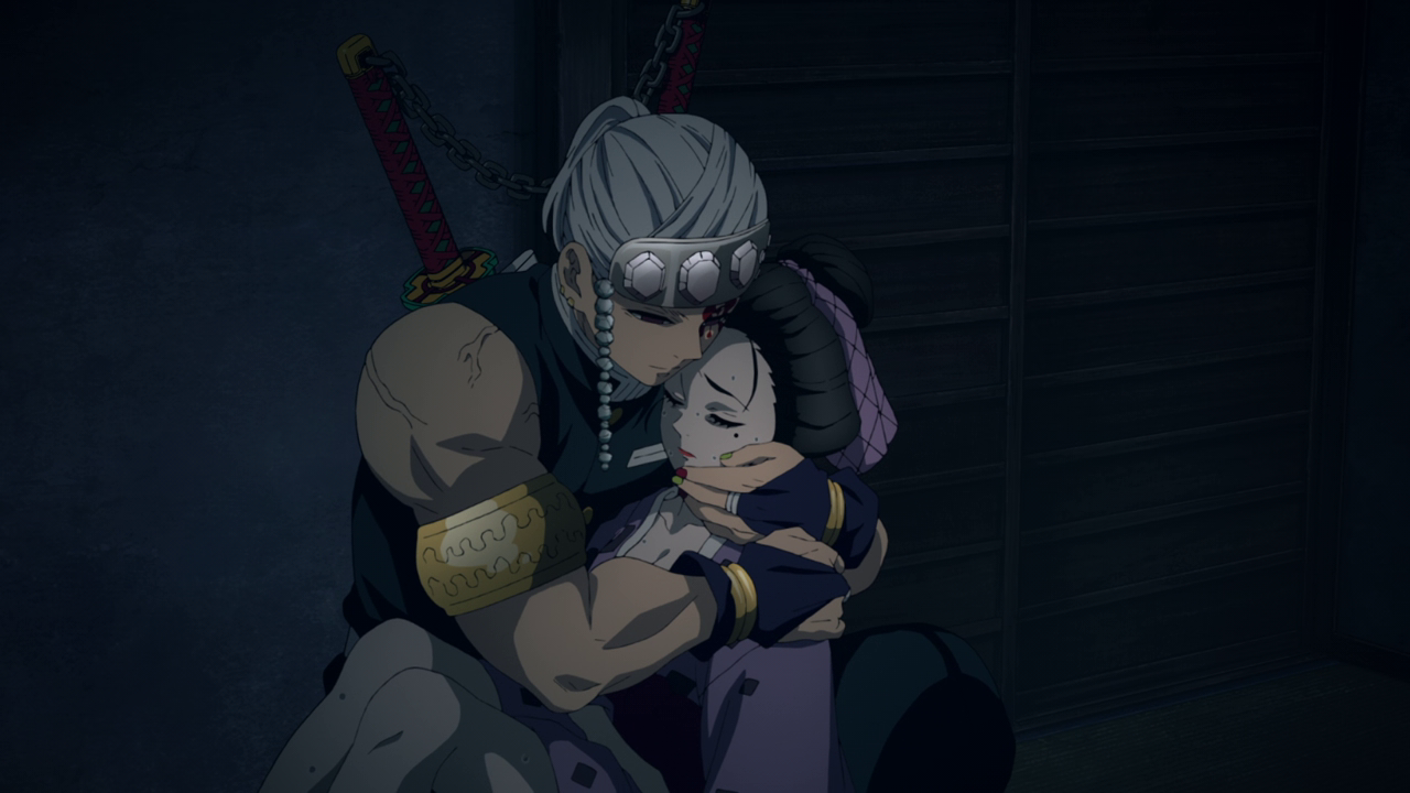 I’m definitely enjoying Tengen a lot more than expected. He was definitely one of the more aggressive Hashira who was pretty set on getting rid of Nezuko during the meeting. However, all of the Hashira have their reasons towards their feelings towards demons and hopefully we get to delve into that a little more with Tengen. From these past few episodes, the guy has been shown to care a lot about others. When he revealed that Zenitsu was captured, his veins were shown popping out of his arms. While he didn’t show it in his expression or words, you could tell that this bothered him quite a bit that it was because of his desperation to save his wives that one of the lower ranked demon slayers was taken. Not to mention that in the flashback with his wives, he told them to worry over their own lives and regular citizens over his own. Just with that comment, you can tell that he’d be willing to give his life if it meant saving others… Just like Rengoku.