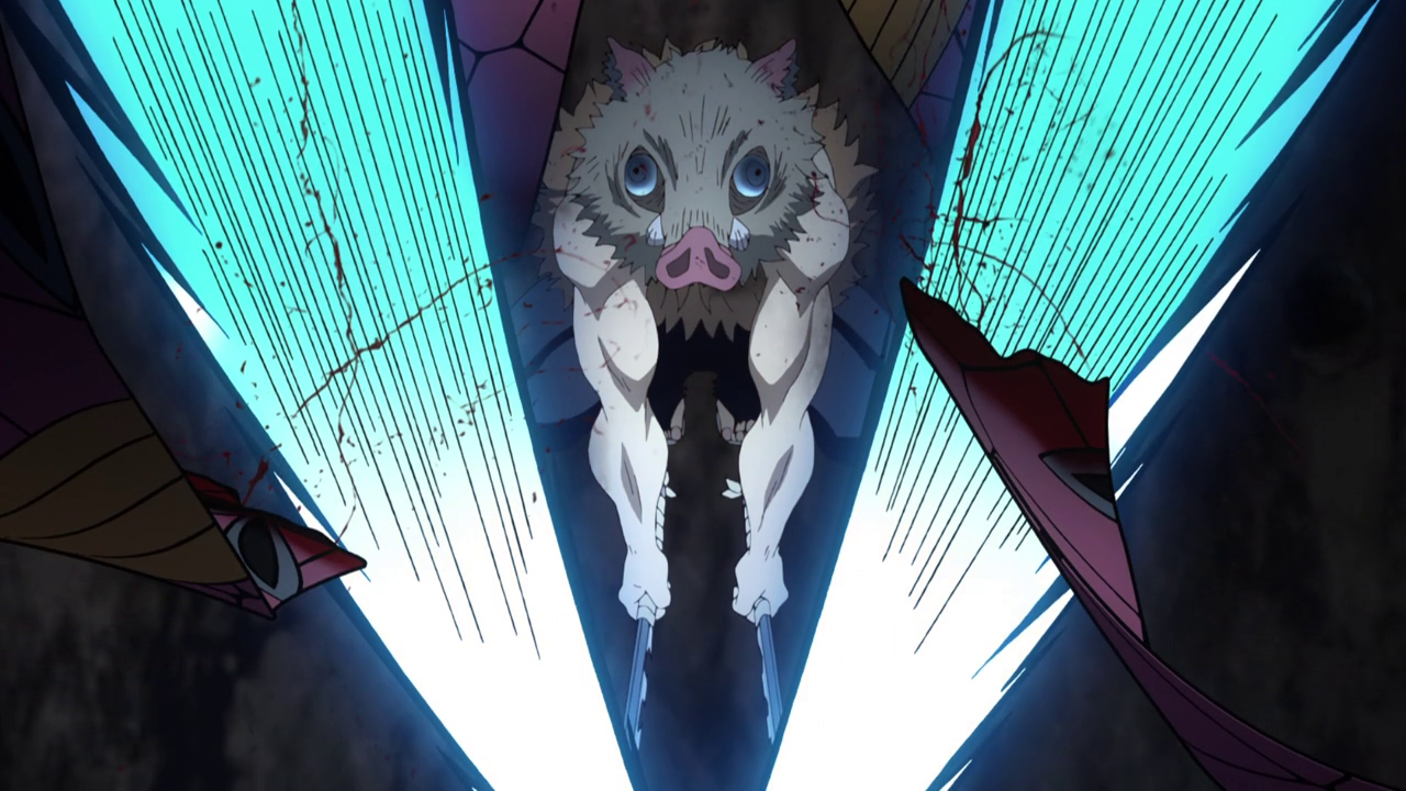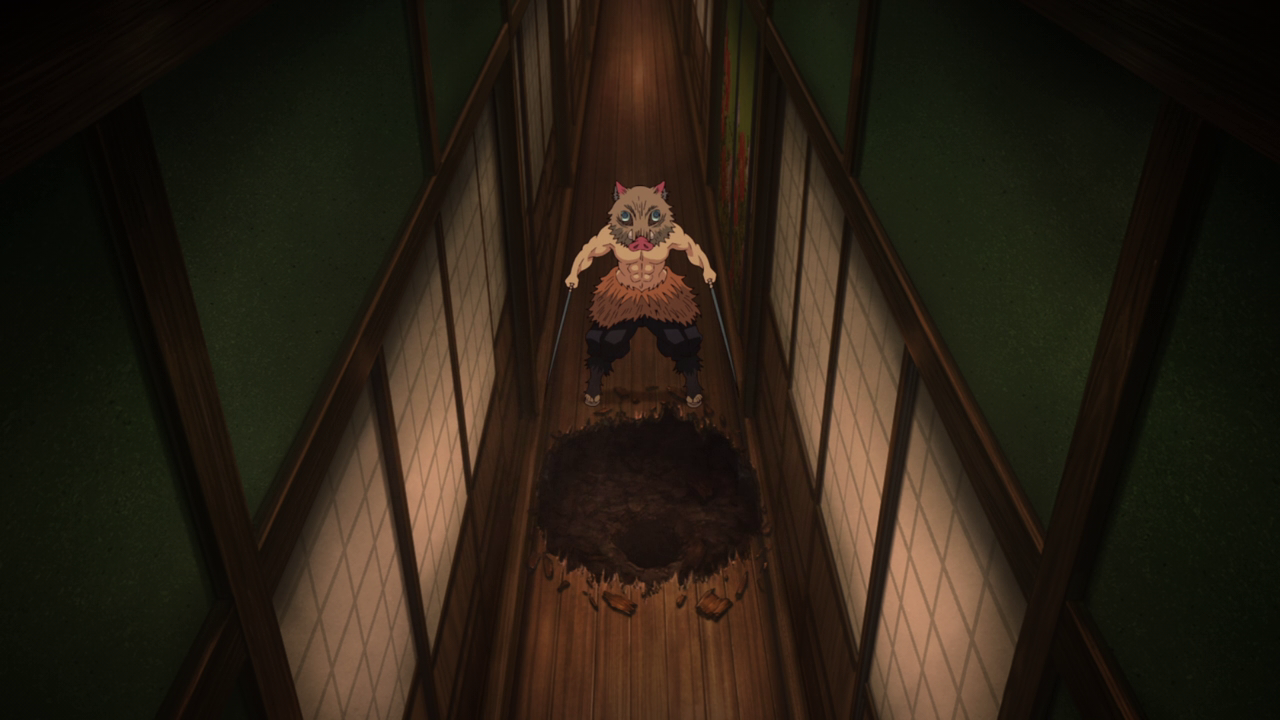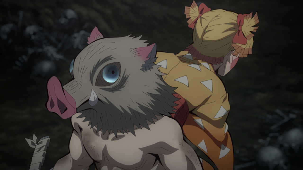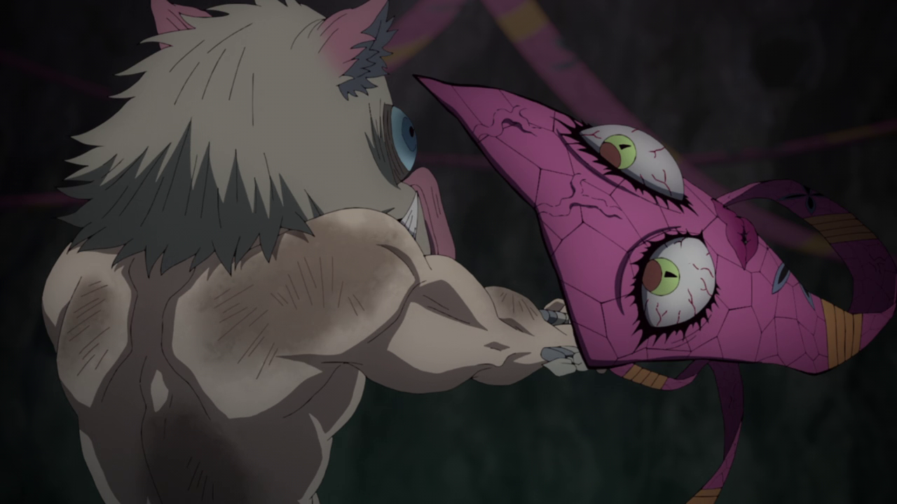 But man, I’ve been liking Inosuke a lot more with each passing episode. Not just because of his development, but I really like his unorthodox way of fighting. It’s just so fun watching him and he really showed just how his animal instincts are put to good use. We also get to see some of his character growth with him putting aside his fight with the sash demon to protect the women that he had cut out. Something he wouldn’t even think about in season 1. However, he put the lives of others ahead of his thrill for battle, actually seeing the bigger picture and even paused to listen to the demon’s threat instead of just continuing to fight.