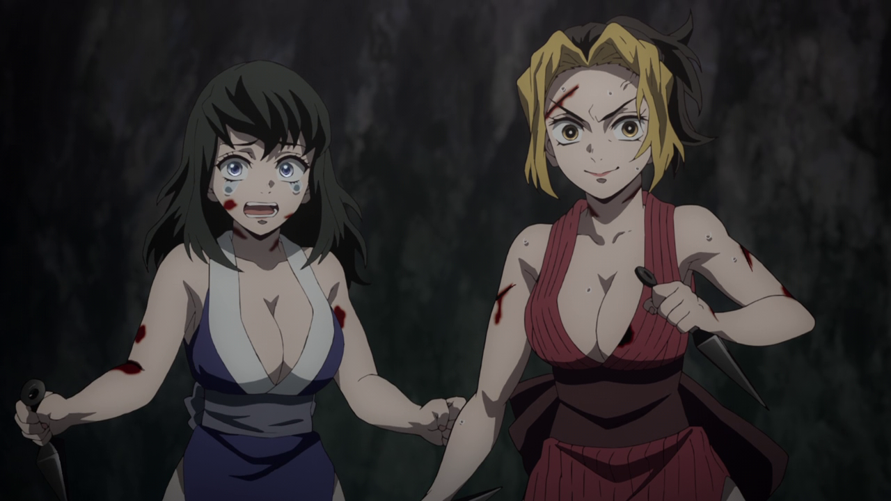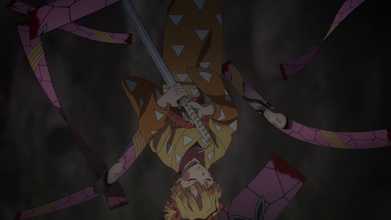 Tanjiro has honestly come a long way where he is able to hold off Daki on his own. While I don’t think he’s ready to the point where he can beat an upper ranked demon, the fact that he’s holding his own for as long as he is is still an impressive feat. Back in season 1, he could barely fend off Rui. I do hope that he doesn’t end up killing Daki himself since I feel like he would have made too much progress. Not to mention I would love seeing him fight alongside Tengen. Since we were robbed of any chance of him fighting side by side with Rengoku.