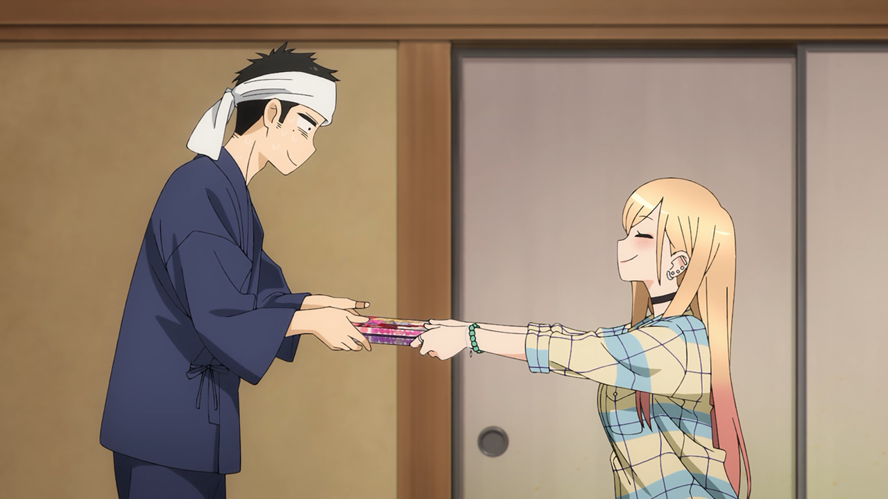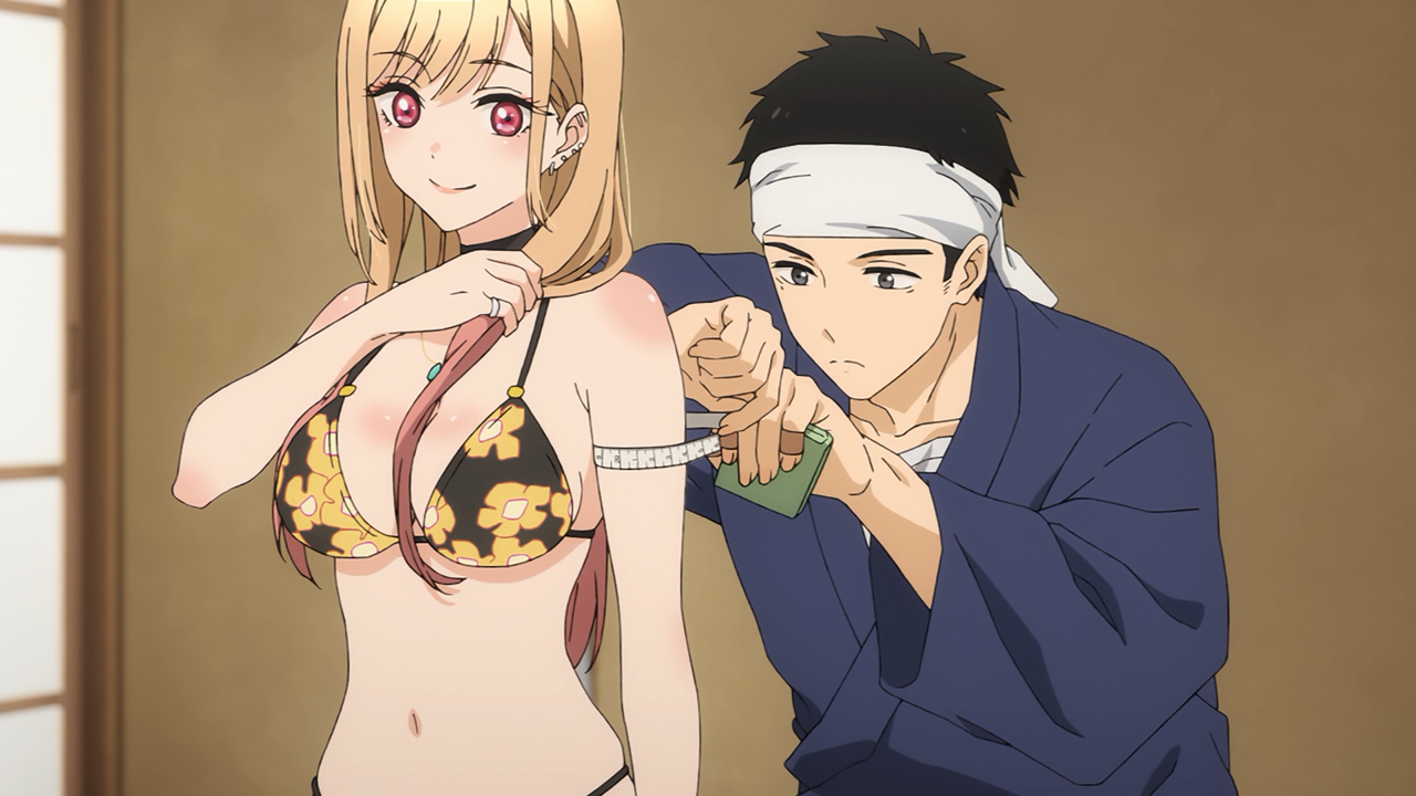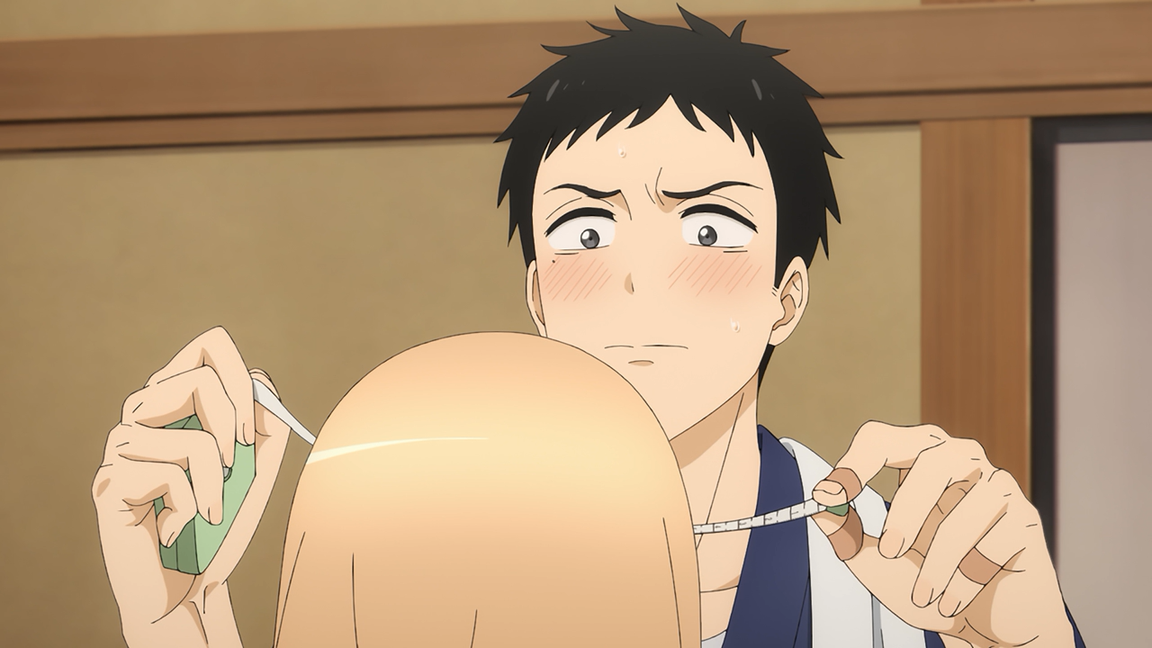 And frankly in Wakana’s defense, Marin could have easily asked someone else to do her measurements, such as a friend. After-all, it didn’t necessarily have to be him, but Marin decided to go along with that anyways (for reasons of course). Since she wasn’t self-conscious about the process– at least not until the very end for the inseam measurement, she was being rather pushy when Wakana was clearly flustered to the point he was uncomfortable with the idea of taking her measurements. But honestly, I would say her attitude was probably for the best just because if they were both to be flustered at the same time, then it would just make things a million times more awkward. Marin’s focus on her getting her measurements taken efficiently in the end did help Wakana realize he just needs to calm down and focus on the task at hand. Ironically, when Marin finally became self-conscious of him, it was Wakana’s turn to be completely oblivious as to why.