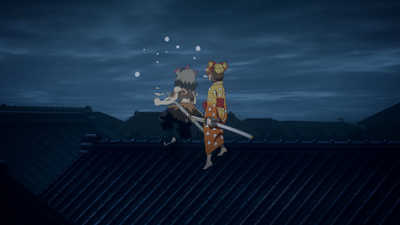 I’m so glad that Tengen is finally here to fight! We got see some action this episode, but I can’t wait to see him in a full fight. the little bit we did see was fun but I am excited to see his fighting style, as well as his own backstory too. I expect lots of flashiness next time! And side note, I think it’s so funny that Inosuke says he’ll also fight in a flashy way. Instead of looking up to Tengen like he did Rengoku, he’s kind of competing against him…in a flashy way!
