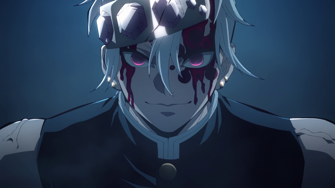 With Tanjiro busy holding down Nezuko, Tengen finally arrives on the scene to help them out. And surprisingly he was able to behead Daki easily. At first I thought it was really underwhelming, but it got weird as Daki was still there and not disappearing. I certainly didn’t expect a whole other demon to come out and appear though. Gyutaro is very…unsettling. His design and voice and everything is unsettling, and it’s bad enough that we already had one powerful demon. Though it also makes me wonder about the sash. That would be a third demon, wouldn’t it?