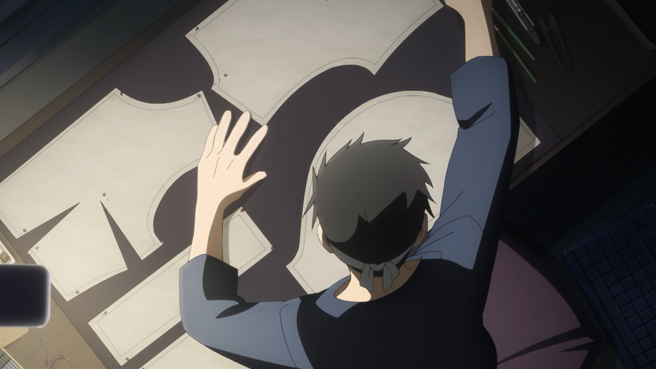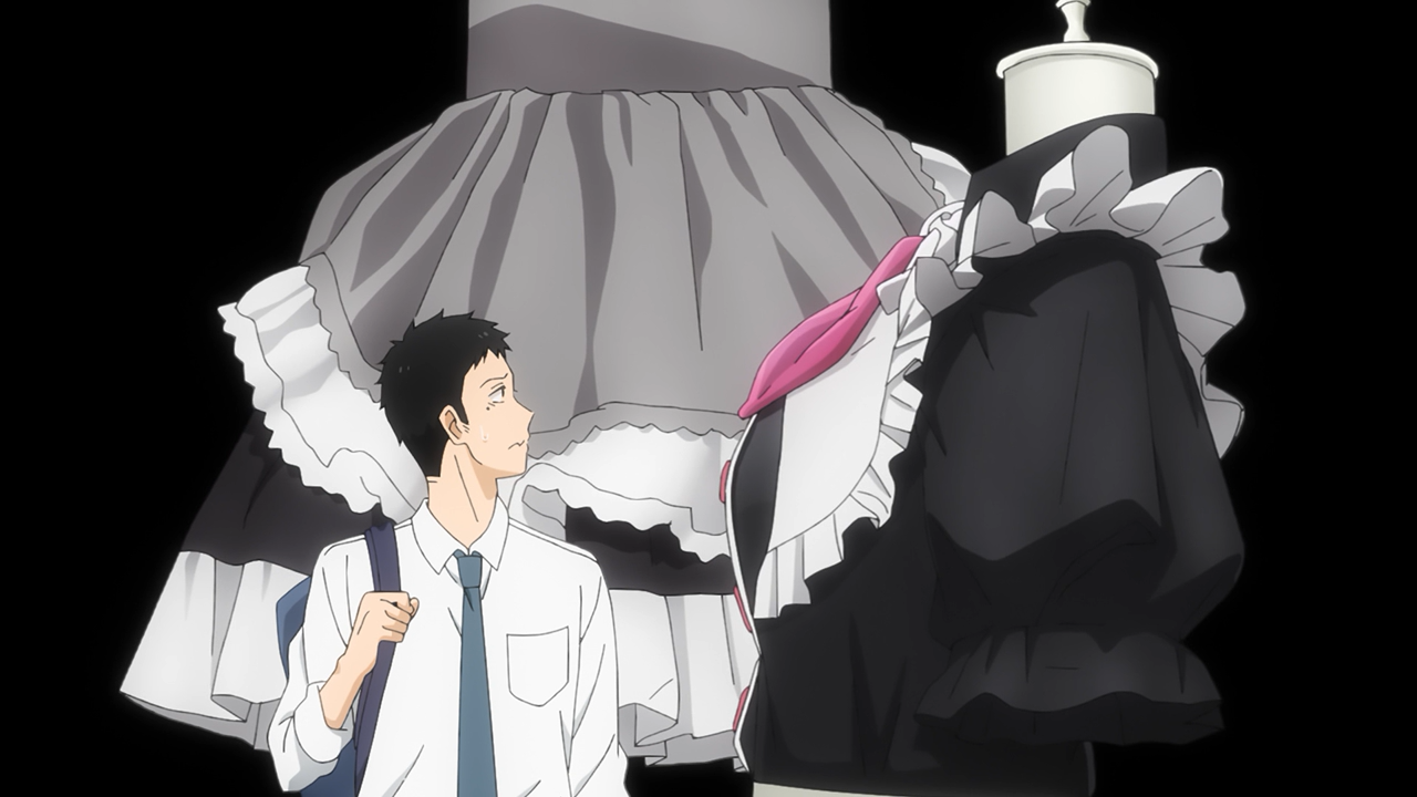 And boy, Wakana really stretched himself then amidst managing the shop, studying for mid-terms that was just around the corner and believing he had to finish the outfit in two weeks time. With everything that had gone down, Wakana felt like he just didn’t have enough time to pull it off and eventually had a meltdown because he was ashamed at himself for being unable to carry out the jobs properly. Worst of all, he hadn’t touched his brushes for practicing his craft since he started, where as his grandpa who had gotten hurt made sure he brought over his brushes so that he doesn’t break his daily routine of practice. But it was his grandpa’s wisdom of how it’s because when one wants to make someone happy, they have the motivation to keep going, even when things get hard that pulled him out of his despair. The resolve to see Marin’s smile once he finishes the outfit was what pulled him out of that grief of feeling like a failure and gave him the drive to finish the job.