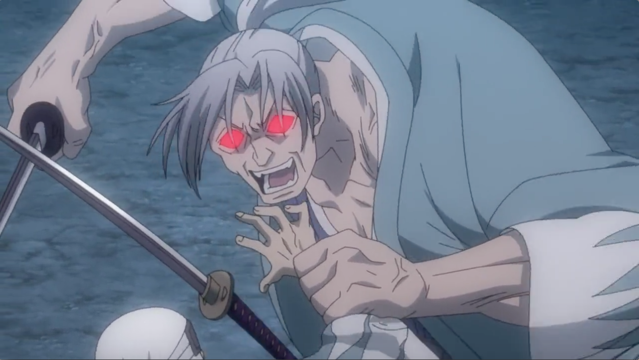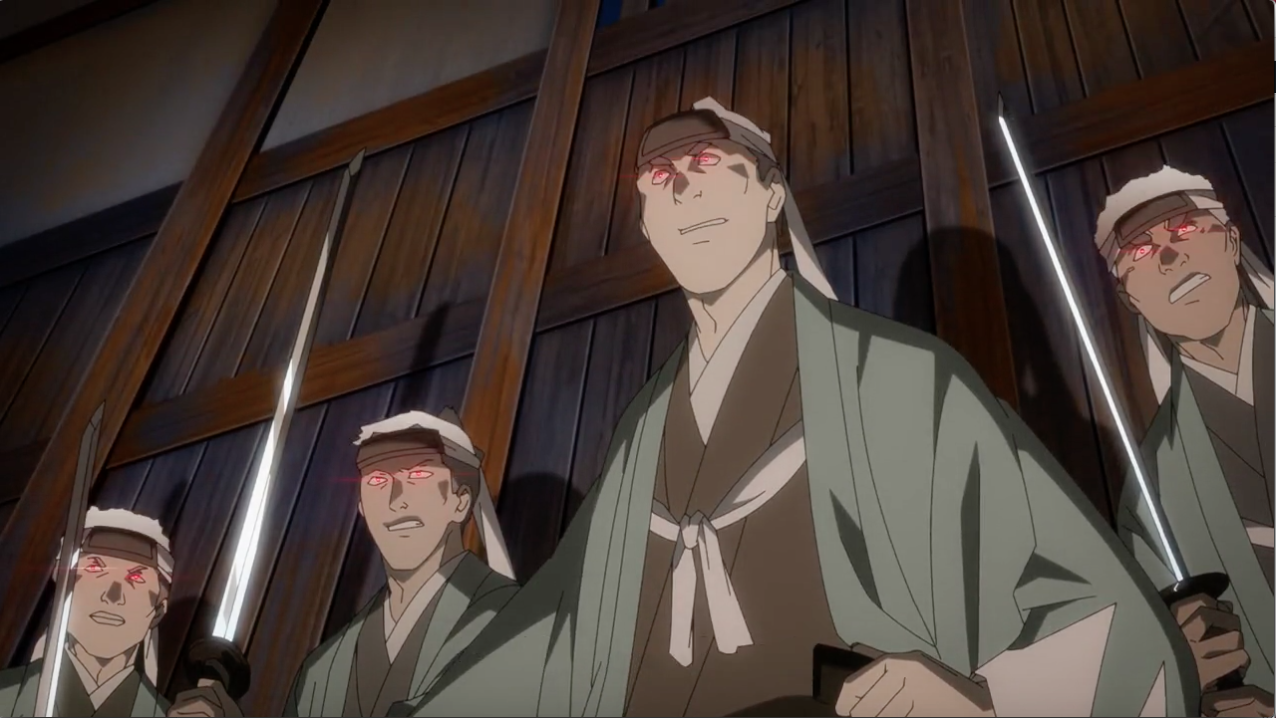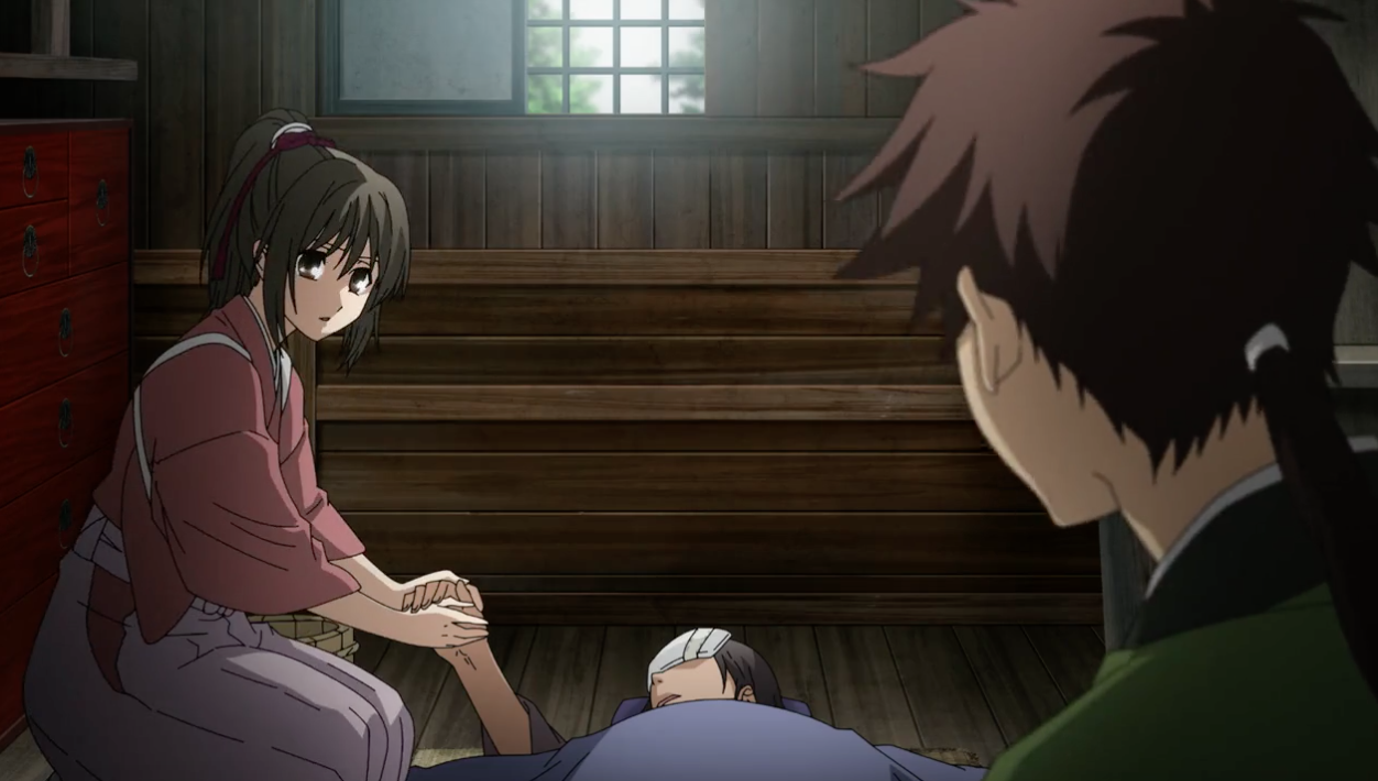 In this final episode, after taking the backseat for the majority of episode 1 and 2, Hijikata finally took on-screen action and stole the spotlight. One of my favourite parts of this episode was how it delved deeper into Hijikata’s role as the Demon Vice-Commander of the Shinsengumi and how he truly felt about it. Being the person responsible for creating the iron-clad rules and the one who made most of the decisions, Hijikata was mainly responsible in forcing the members of Shinsengumi who broke the rules to become Furies. When a member broke the rule, they were given two choices: commit seppuku or drinking Water of Life. Hijikata was the one who gave the options and oversaw their choice.