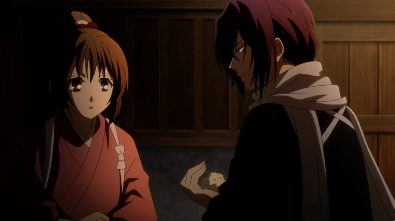 Hijikata had always has a strong moral compass that he bury for the sake of the Shinsengumi, yet could never bring himself to completely throw it away. The episode wonderfully showed the subtlety of Hijikata’s expression of guilt and how he dealt with it. His cold tone with underlying sadness when he told his decision to confront the Furies, his request to Chizuru for a lukewarm tea to ease his mind after having to kill his own comrades that he hid through his demon persona, and his pained expression as he held the dying Sakai in his arms, and watched the milky way while mourning for his deceased comrade.