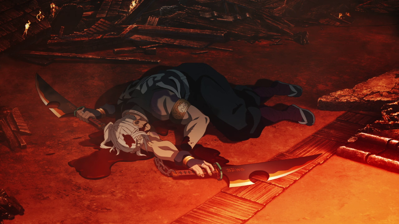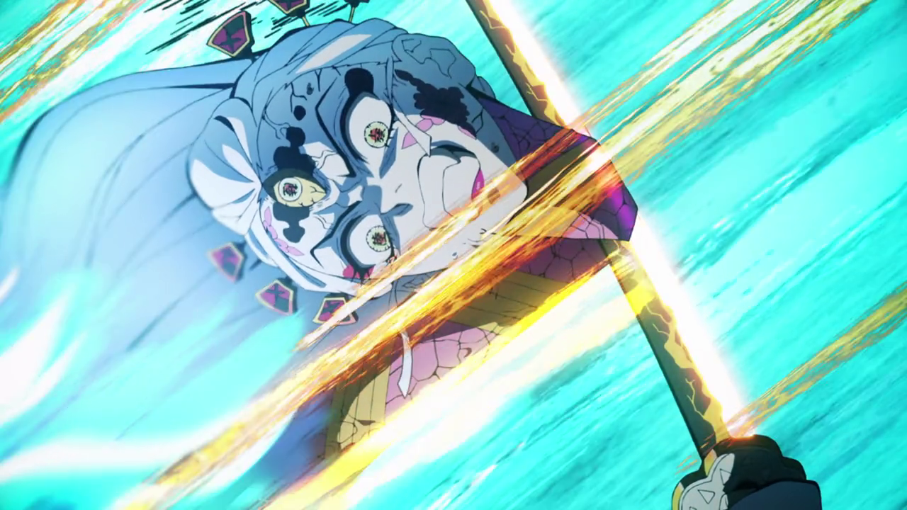 Now, what else can I say about this episode other than it was a spectacle. It was a scrumptious feast for the eyes animation wise, but the fight choreography was spectacular. Like I said, the first third of the episode was dragging on too much with a couple good moments here and there. Tanjiro’s ingenuity shows up again with the kunai, it reminded me of the first episode when he sort of did the same strategy on Giyu with the axe. And starting with the kunai and headbutt is when the episode seriously went into high gear. If you looked away from the screen for a split second you would miss out on something. I just cannot believe this show can continue looking so gorgeous with each passing episode, and this one was definitely one of the best. It may have been overkill sometimes, where it sort of reminded me of DBZ with Zenitsu’s Godspeed Thunderclap, but I also like DBZ so that moment was very exciting lol. I can kind of understand when I see people complain about the “asspulls” this episode, what with each character being near death and being like “Not really!” Maybe it’s because I’ve seen a lot of shounen, one of those shounens being Jojo’s Bizarre Adventure and that is full of weird “asspulls” and just…stuff that happens and we just accept it because JJBA is just like that. And it’s great! Inosuke moving his organs isn’t the weirdest since we’ve seen his body in the strangest of ways, and Tengen being able to stop his heart and all that probably because of his shinobi training. Also we’ve seen other crazy things. Also, I think it’s just the characters channeling their last bit of adrenaline in desperation to survive and defeat these demons. At least to me that makes a lot of sense. But their bodies have seriously been pushed to the absolute limit and things are looking even worse for our group, especially with that cliffhanger! I’m just so worried!