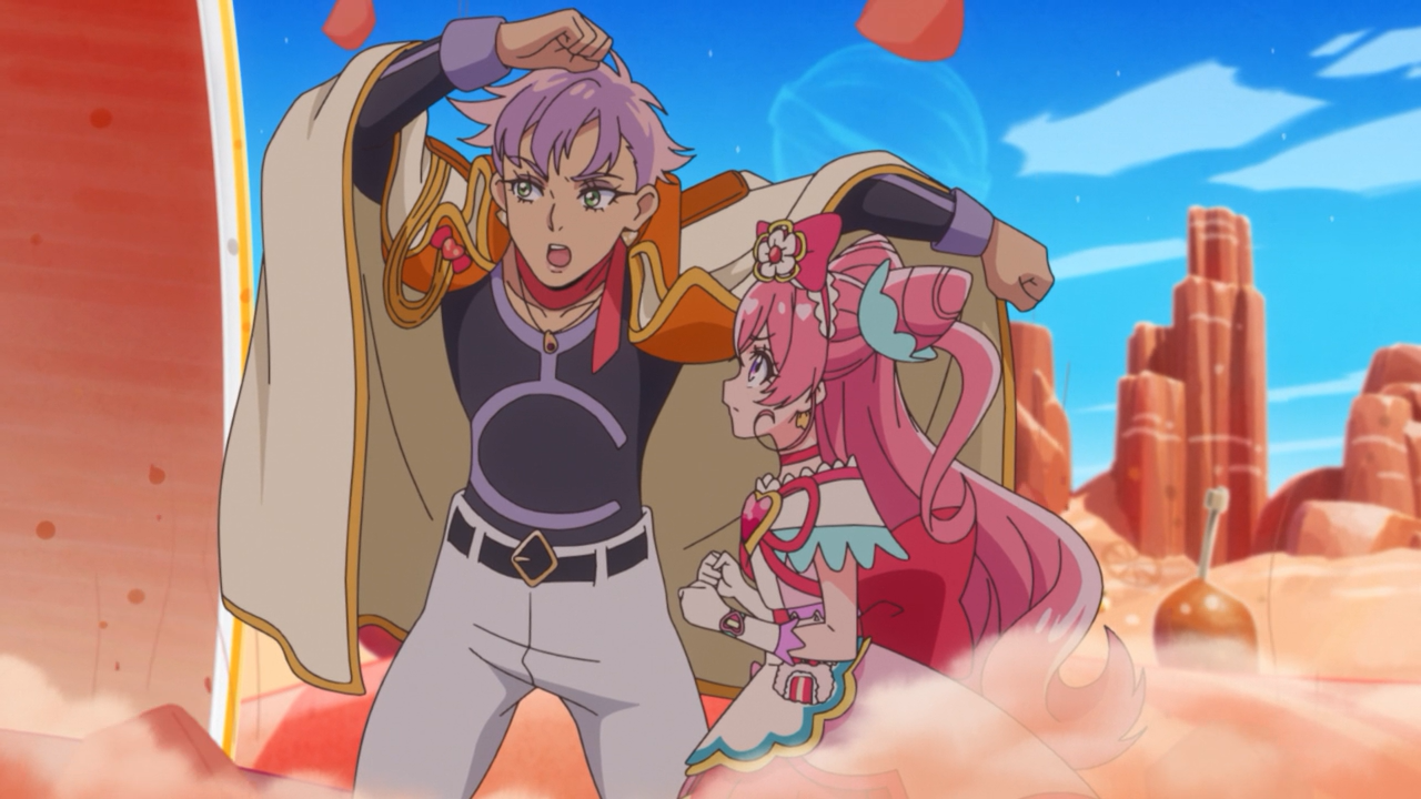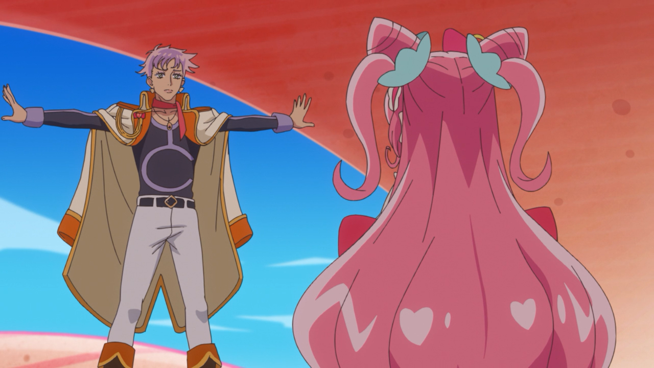 Speaking of Mari, I must say I do appreciate how his character is showing a lot of consideration of the danger and responsibility that has been put onto a young girl’s shoulders. And having lost his powers it only made him feel worse about it. So what did he do? He shrewdly decided to leave with Kome-Kome in tow so that Yui couldn’t be dragged into the fight. And his plan almost worked, except he neglected to take away the Heart Cure Watch, which what enabled Yui to find him and get access to the other dimension even when she was late to the scene. (And Mari’s shocked reaction made me laugh so hard!)