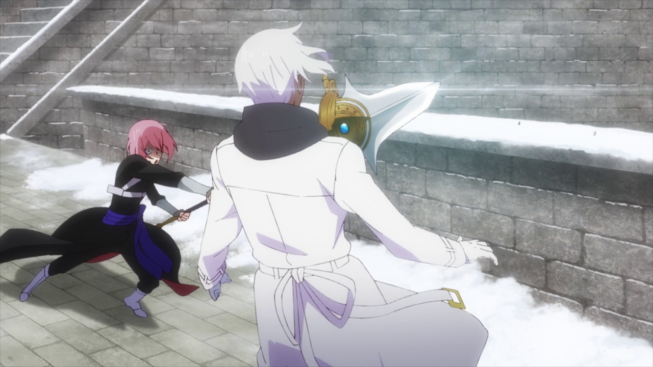 There was also the problem of certain scenes not making much sense time-wise. Like when Astolfo picked himself up and started towards Noe, it took him like 4 minutes of the episode to get over there… despite them being in the same room and Noe and the others having time to do quite a few things… which was really weird. You cannot convince me that it took him that much time to get over there and they did not notice him until it was too late. Even if their attention was elsewhere, that is an open spaced room, he could not have snuck up on them like that.