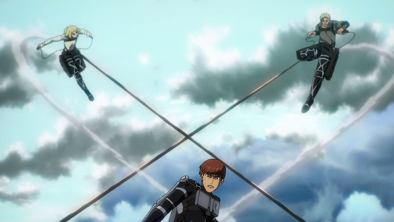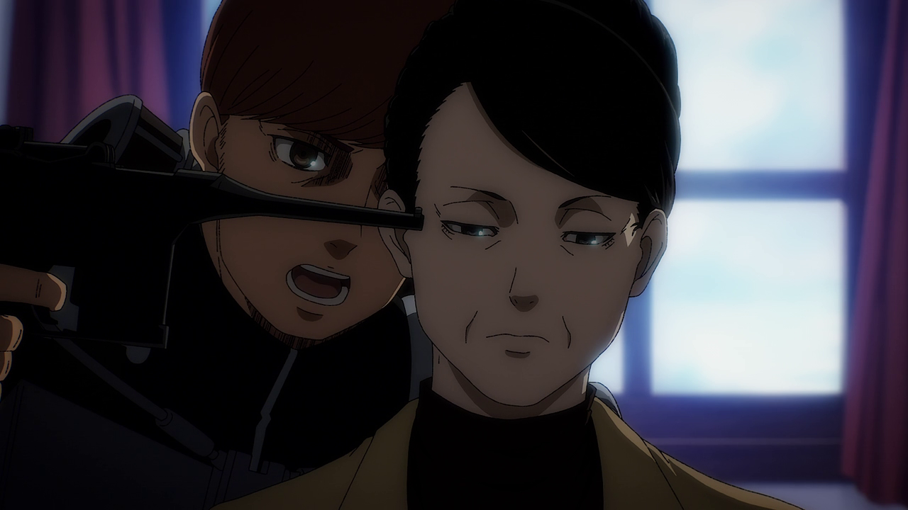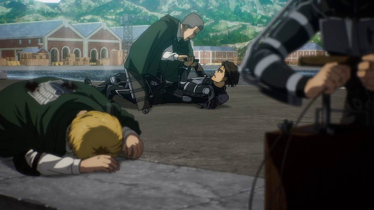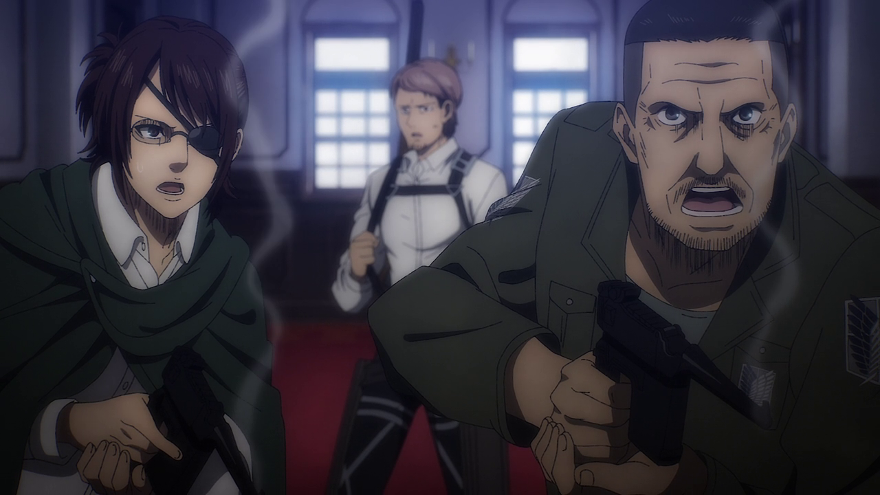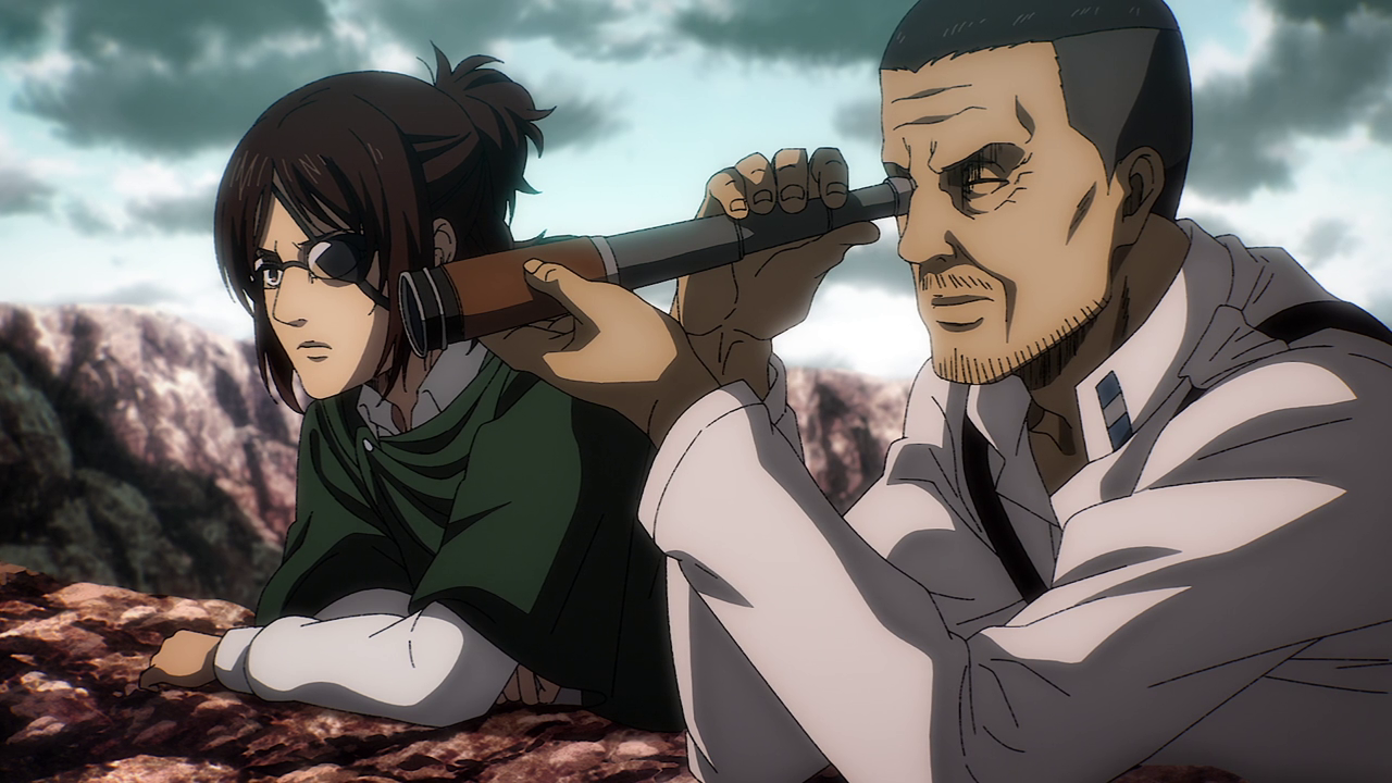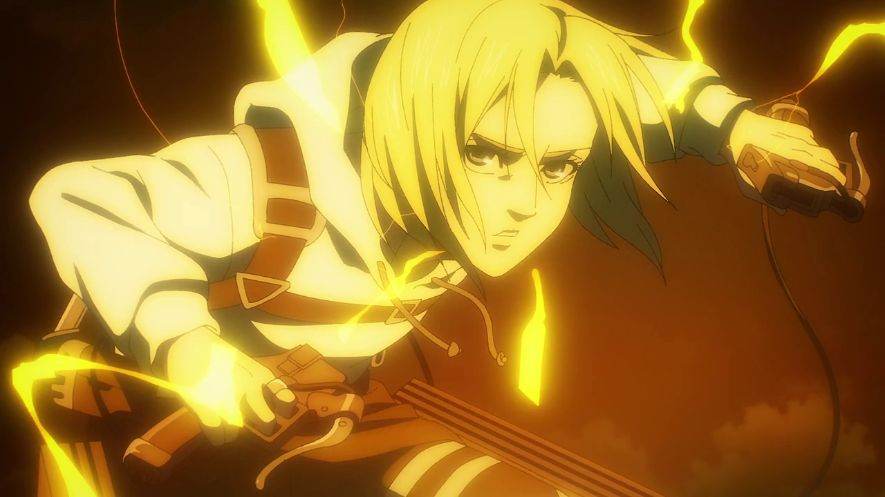 Magath’s development comes to a head in this episode. Though I do admit it was a bit hard to watch him try and force Yelena to tell them where Eren was going all the while threatening to break her arm. It doesn’t matter how terrible a person is to me, I still hate seeing anyone tortured. Despite that, while I do think Magath’s turnaround came a little too fast and sudden for my liking, at least we saw what lead up to this development and I still respect the fact that he was doing his part to “keep the kids out of the forest.” Even going as far as to not want it so that Reiner, Annie and Piek don’t constantly have to take the blame for all this violence. It takes a lot, especially for someone older to admit what they did and believed was wrong. So good on Magath for finally seeing the Paradis group as people and giving them a way out of the violence if they so wished it. Not to mention wanting to pass down their history not to use it as propaganda, but to make sure something like that doesn’t happen again. And man, when the attack begins, it felt so poetic to see him in the scout jacket. To which it seems like he received from Jean.