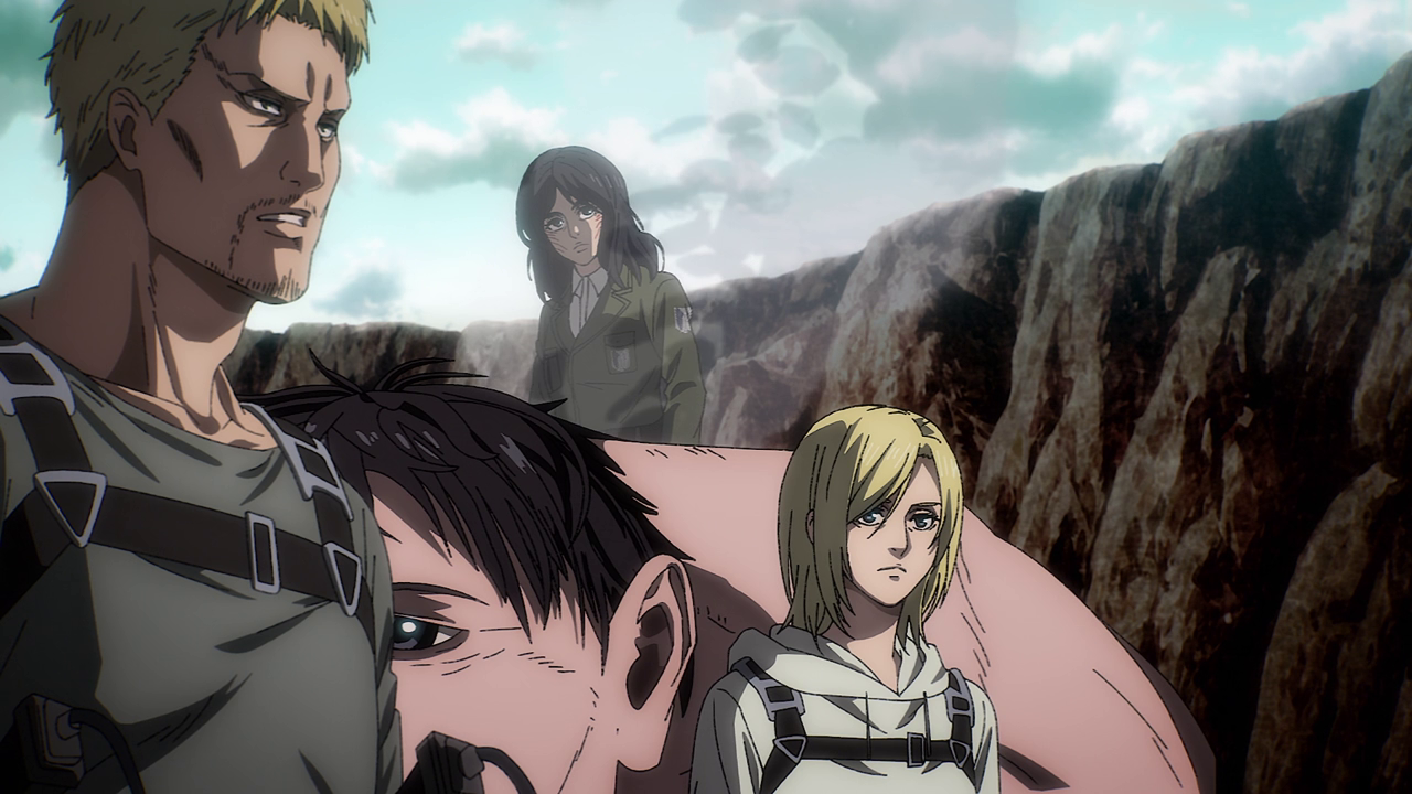 Man, that last scene absolutely broke me. With everyone believing that they’re in the right, there was no way that this conflict would have ended peacefully, even with Armin’s acting skills. Seeing how this must have been the perspective of Reiner and Berthold all those seasons ago made the moment hurt even more because everyone seems to be fighting for what they believe is “saving the world.” This episode was just pain and my heart goes out to Connie.
