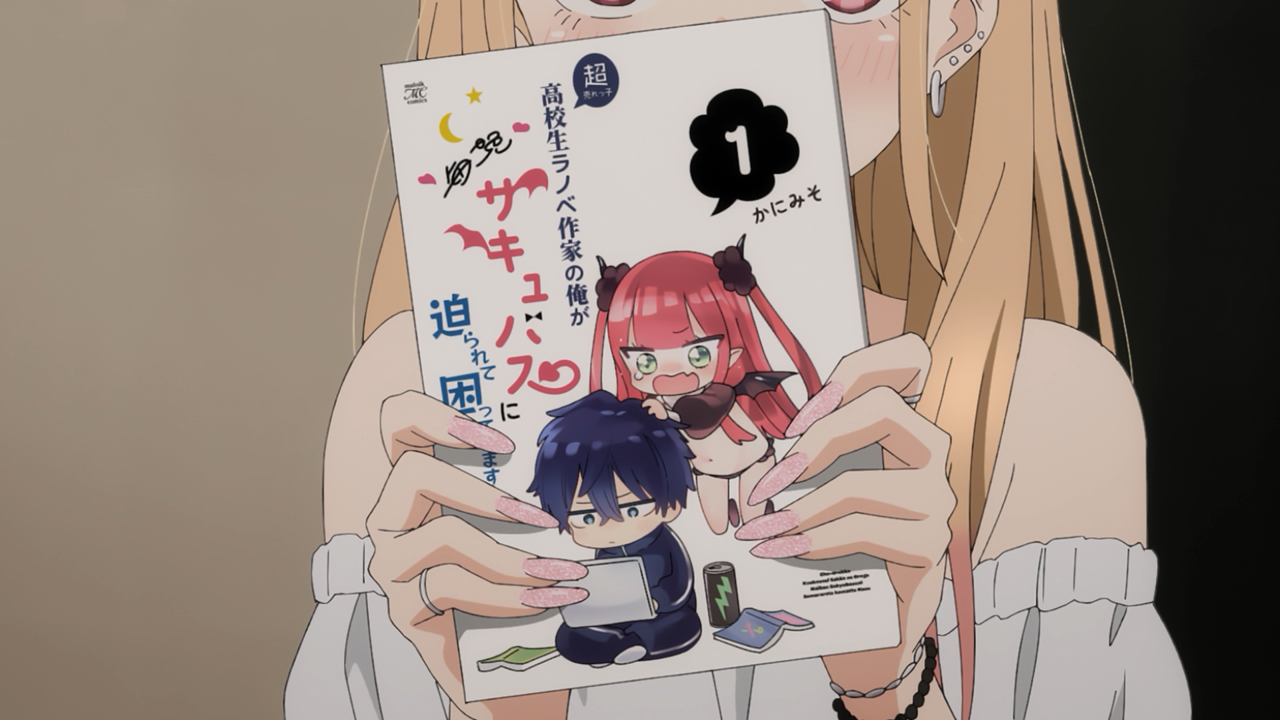 This week Marin introduces to a fluffy, slice of life, four panel manga, I’m a Mega-Best-Selling High-School Student Light Novel Author That has a Succubus Thirsting for Me Every Night and I Don’t Know What to Do, aka: SuccIDK. When she explained to Wakana what a Succubus was, he was justifiably skeptical how this could possibly be cute and fluffy when the demon’s description was super disturbing. But sure enough, just as Marin said, it was fluffy and Wakana was quickly smitten by it to the point he bought a copy of the manga for himself before they went home from their date. It is so cute that he discovered his preference is the cute and fuzzy types of series. Heheh~ (He also bought a Jinbei he spotted, which was right up his alley. He was very happy with his purchase, but I digress!)