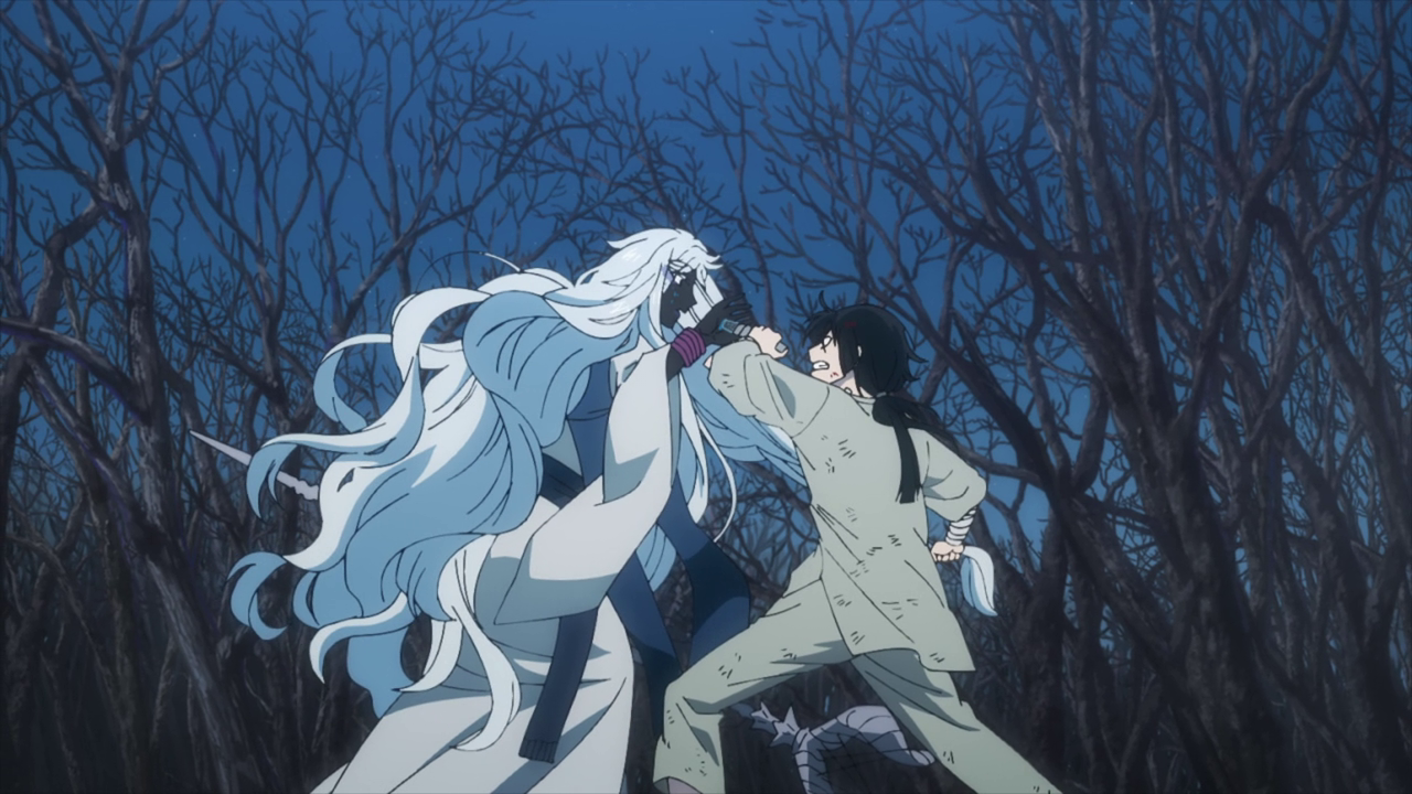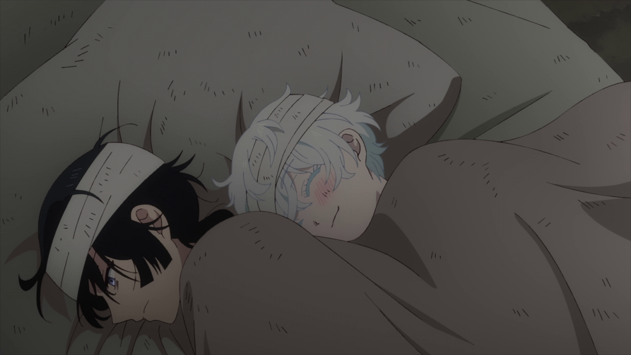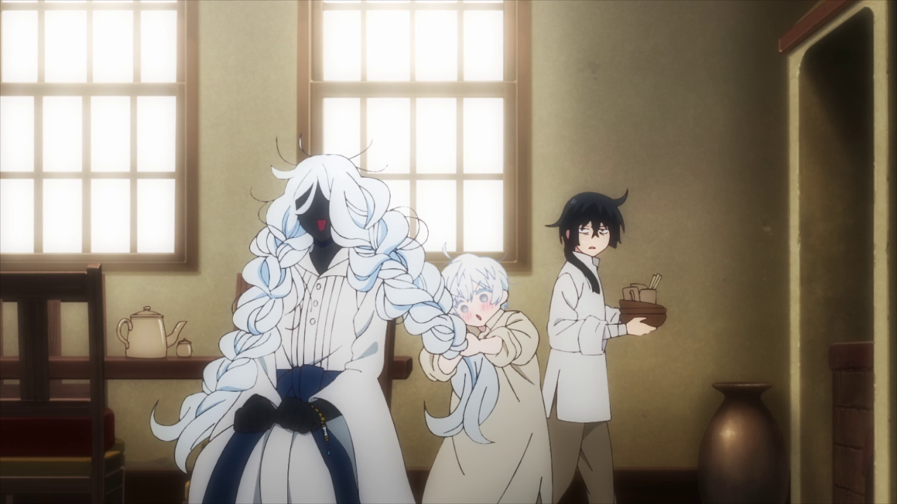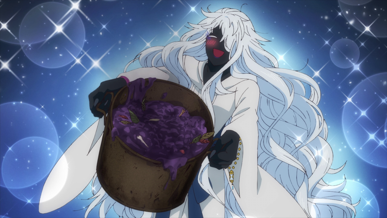 We finally get to officially meet the Vampire of the Blue Moon in this episode. While we’ve had glimpses of them in past episodes, we actually get to see what kind of person they are and how they interacted with Vanitas and Mikhail. From the story told in the first episode, they made the Vampire of the Blue Moon out to be a vampire driven to take revenge on all the other vampires. However, the vampire we got from this flashback was a soft-spoken and a genuinely caring individual. Despite lacking normal social cues, they still had a lot of compassion as they took the responsibility to look after the two boys after interrupting the final experiment. Not only that but they stayed by Vanitas’ side and listened as he poured his heart out about his trauma in his fevered state. They even had their cute moments and I had quite the laugh when they got so frustrated about Vanitas’ critique on their cooking that they just threw the spoons down on the floor. They did their best for the boys and most likely became a parental figure to them in one form or another.