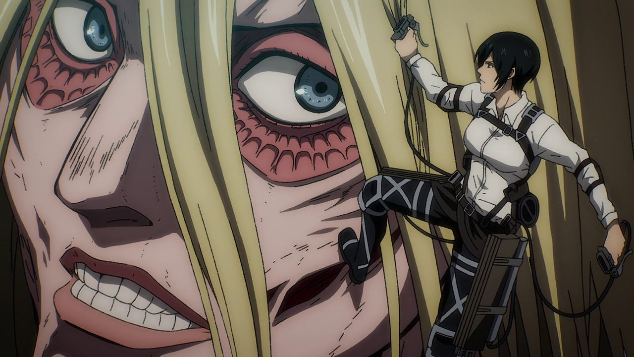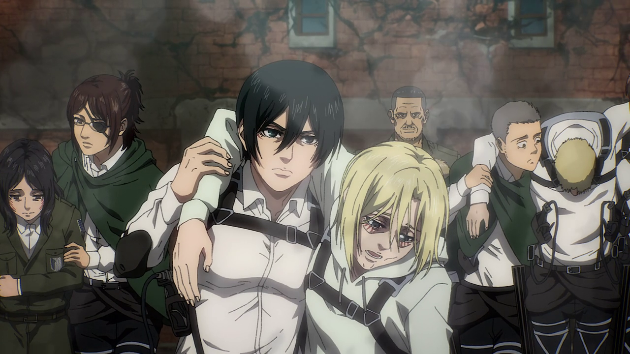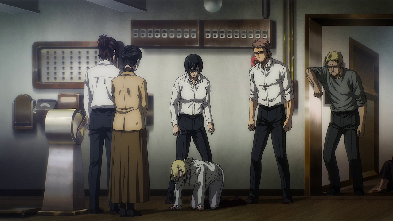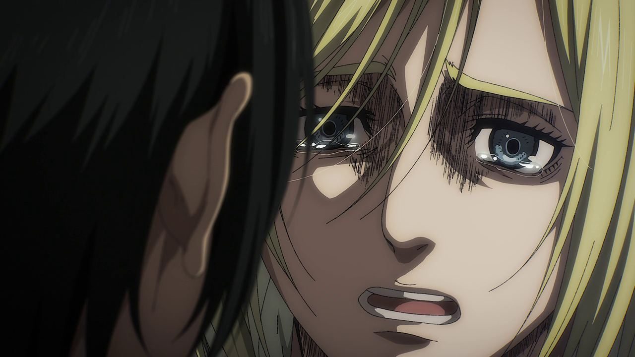 Annie’s breakdown at the end of not wanting to fight everyone anymore hit really hard. At this point, she’s just so tired of fighting people, which is probably how everyone in this series feels. So once again, she asks Mikasa if she would be able to sit by and allow whoever to kill Eren. And I can’t help but feel that they purposefully used the phrase “stand by and watch” after just killing off Shadis and Magath who were bystanders. Which means, Mikasa most likely will not stand by and just watch Eren die. However, what that entails is yet to be determined in the anime at least. But man, this was probably the most emotional Annie has ever been and her voice actress absolutely nailed just how defeated and in pain Annie must feel in this moment. Just her performance alone made me tear up a little. Especially when she even says that she doesn’t want to fight anyone anymore. Be it Mikasa, anyone else in the group and even Eren.