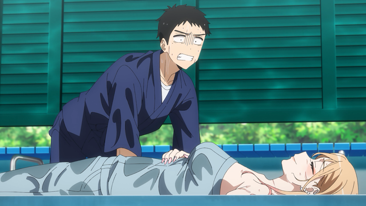 The second event that followed the first horror movie viewing was short and sweet, but still exceptionally cute all the same. Marin realized she had forgotten her math drills at school, so she and Wakana went over to pick it up. On their way out, they dropped by the school’s pool, which Marin thought it’d be fine to dip her toe in, only to fall into the water. Turns out the girl only knows how to sink not swim, so Wakana had to fish her out of there.