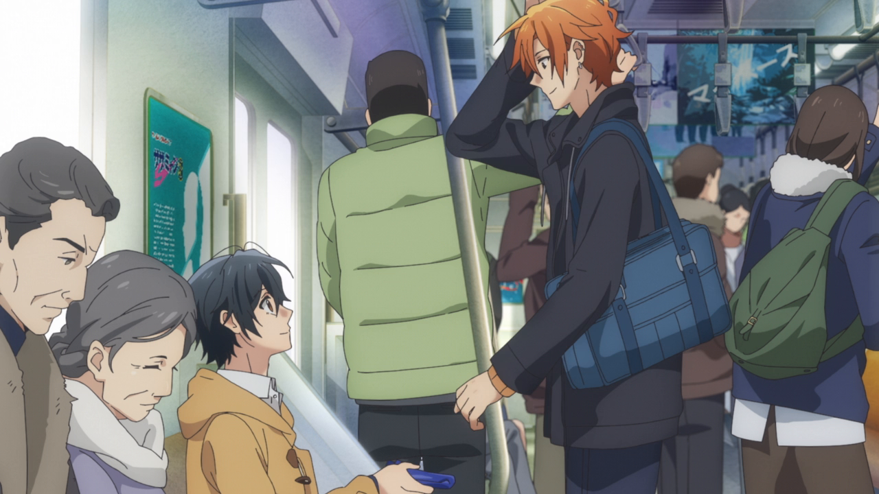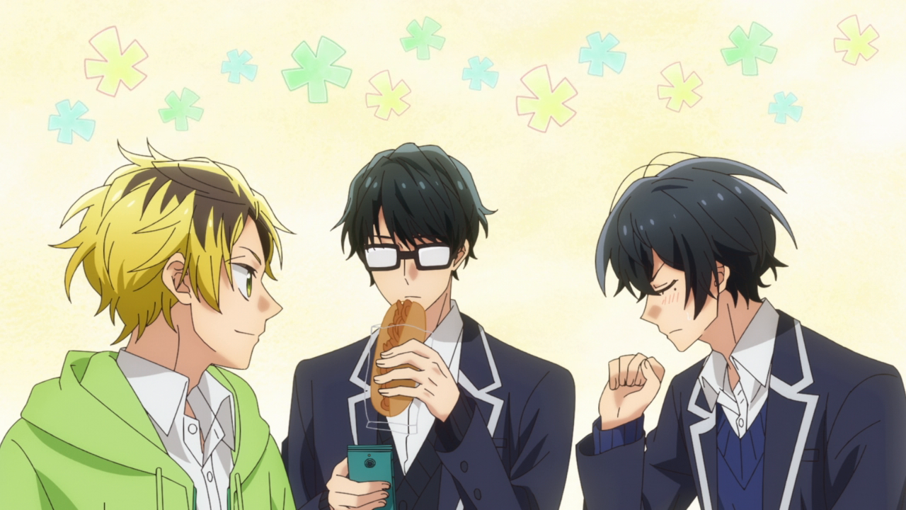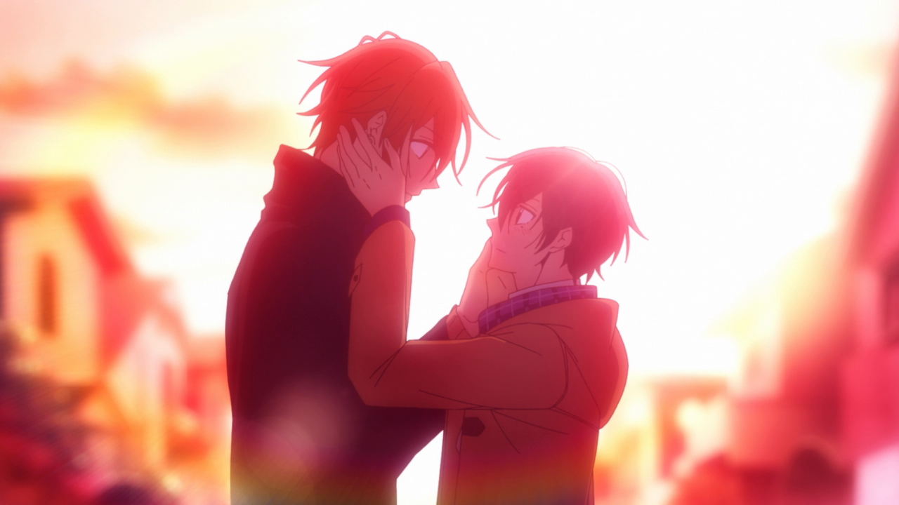 Hanzawa and Miyano’s conversation was fantastic. It didn’t come off as too cheesy or in your face, it very much was a very real conversation. Their relationship isn’t going to be the most easy because of them being a same-sex couple. People are going to look at them weird and ask them strange things that they dare wouldn’t ask a opposite-sex couple, a point I’m glad he brought up because of how true it is. Only being able to relate on a family-level with his brothers, he imparts some words for Miyano but he very much believes that they’ll be okay and is in full support for them. Miyano’s response was also pretty uplifting. It really shows how serious he is about his feelings and their relationship that he’s fully prepared for those comments in life, but he cares about Sasaki more than he cares about what other people say. And dammit that is beautiful. While I did complain that I wish the side characters got a bit more depth, I am happy with what we got because they’re all just so charming. Hanzawa definitely got the best treatment, though.