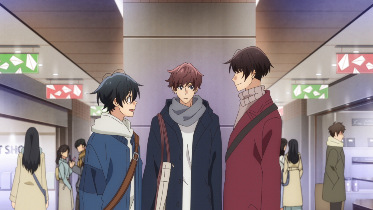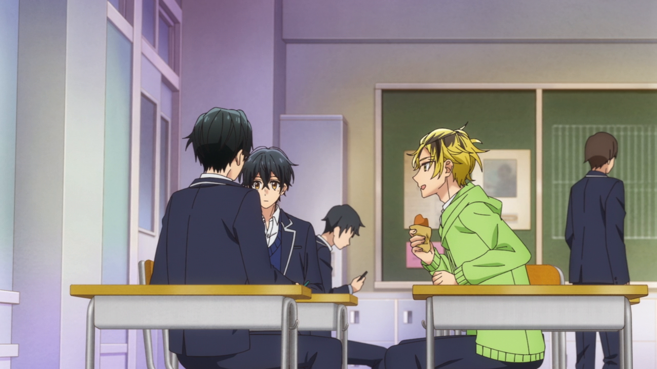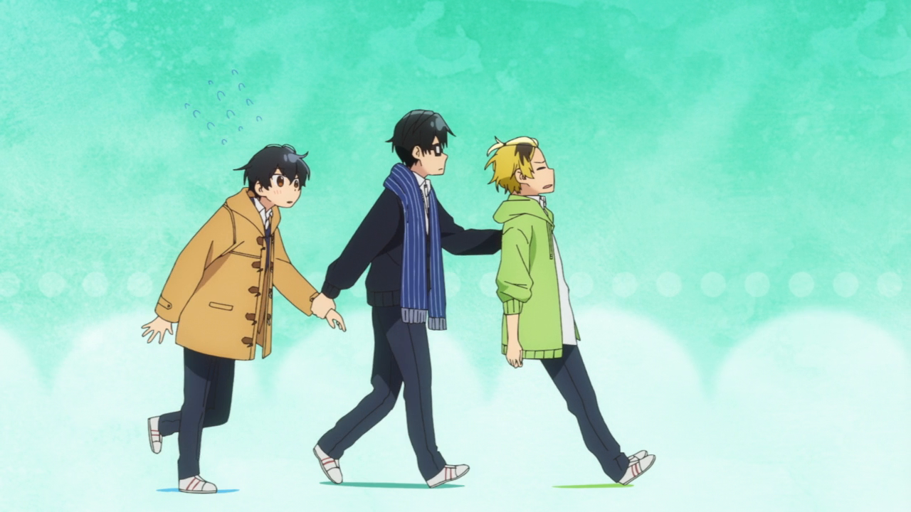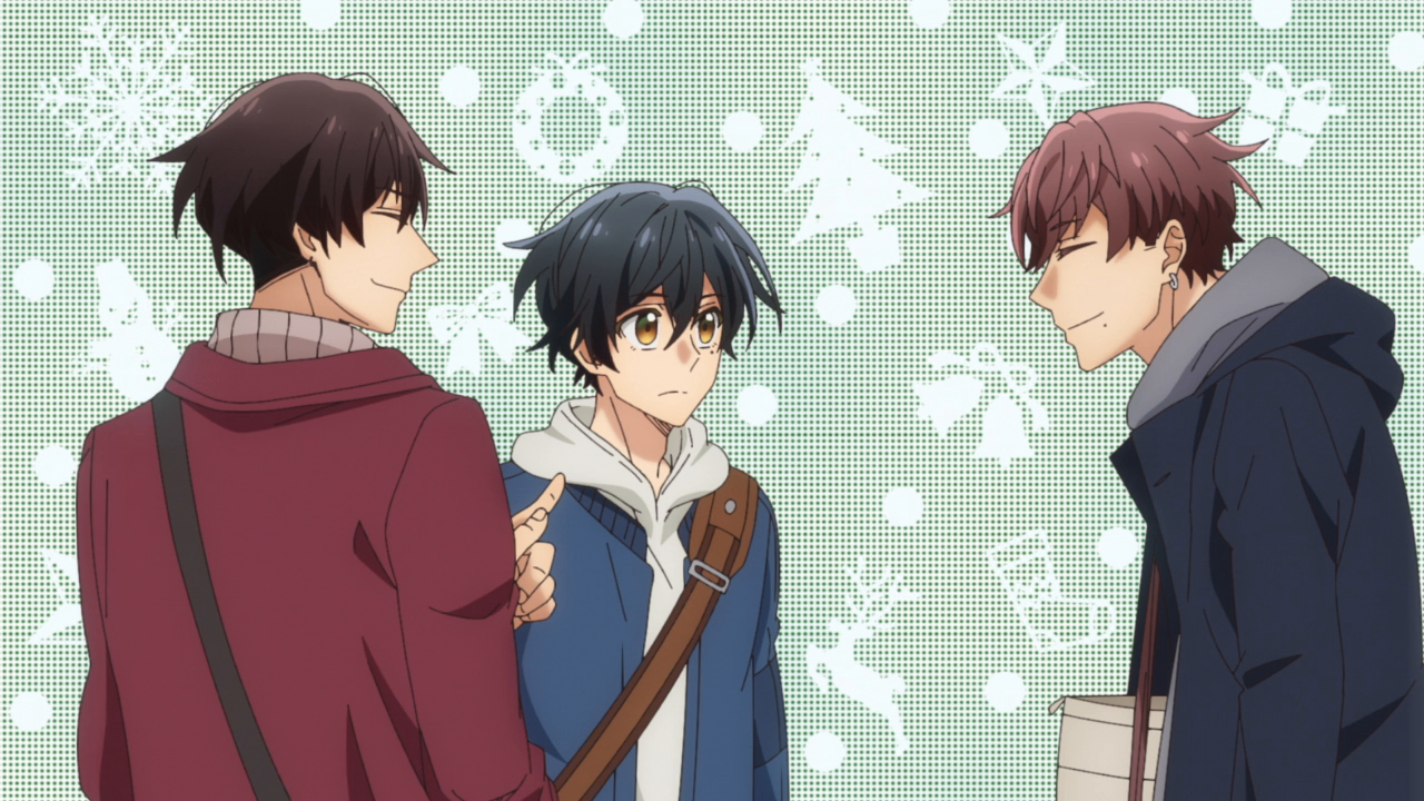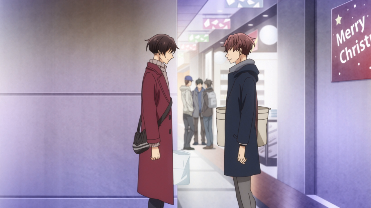 I think the most interesting part of the episode however was the part with Hanzawa and his brother. I didn’t think we would get into that drama during this season but I guess so. I think it may have happened a little too fast, but it was fine. Hanzawa didn’t dwell on everything too much and ended up feeling more comfortable with Miyano and Sasaki’s relationship seeing how happy they are. Hanzawa didn’t exactly take the news too well when his older brother came out as gay to his family, apparently he had been pretty harsh towards him. We don’t really know how harsh he was since we never saw that particular confrontation between them, but it seems their relationship had gotten shaky. He didn’t accept it at first but soon he overcame his prejudice and saw how happy people can be despite being attracted to the same sex. I don’t exactly know whether he came to that change before Miyano and Sasaki’s relationship formed before him or afterwards, but it’s a positive change. I did kind of laugh when we saw the coming out as his brother was so nonchalant about it, as well as the other brother. And the mom was like “Wait was that a coming out? Huh, you’re gay too? Hmm okay.” She was so okay about it and there wasn’t that big a reaction from the other siblings as well either that I thought it was funny. Maybe some people may find it weird only because we’re so used to coming out moments being this grandiose thing in media, and in real life it can be for some people, but I actually liked how this show handled it with how casual it was. Coming out to your family should be normal and casual and I’m glad we got this whole segment in general, with Hanzawa accepting his brother and the two of them acting like regular brothers. It just felt so normal and I hope in the near future topics like this can be normalized.