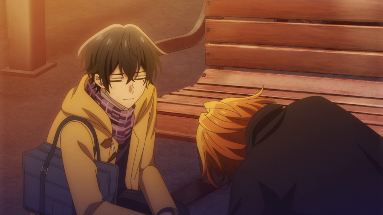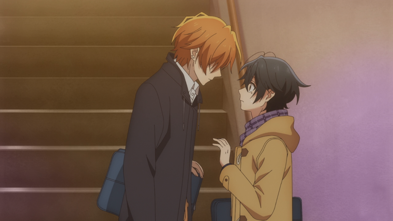 Before moving on to the big moment of the episode, I just want to say how much I love Hirano and Hanzawa. Kuresawa and Tashiro didn’t do much this episode but Kuresawa did give Miyano the right train exit, but I love how supportive and accepting they are. And of course the same can be said about Hirano and Hanzawa, who more directly supported both boys. Hirano always went out of his way to smack some sense into Sasaki, and with him walking out on Miyano he was very much annoyed with him and did what he could to help. Hanzawa being the more calm guy with wise words, Hirano is more the “You idiot what are you doing?!” type, which I also appreciate lol. He even says at the end he’s not good with this stuff, but he’s helpful in his own way. Thanks Hirano.