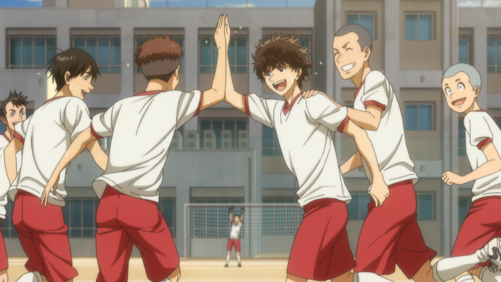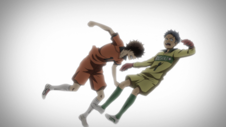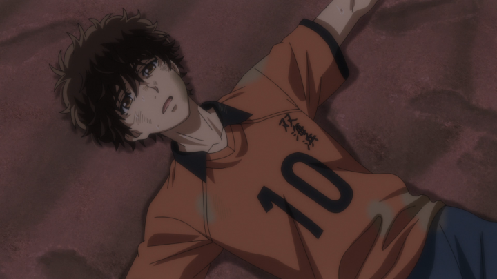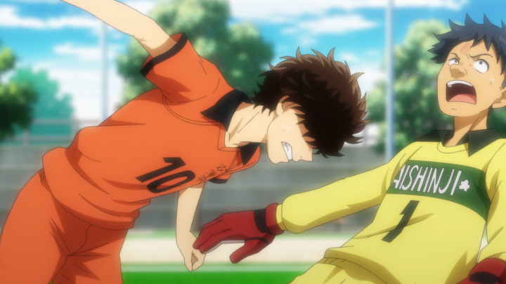 But where one door closes, another opens. Tatsuya Fukuda, the coach for the youth Esperion FC, happens to be at the game and despite seeing the unsportsmanlike conduct is extremely interested in Aoi. So much so, that he waits around for the kid to run multiple laps and wake up from passing out just to 1) show him a new technique and 2) to ask him out some of the plays that occurred in the game. It’s with these interactions that we learn that there is so much more to Aoi’s selfish playing style. For one, he’s not the type of player that throws the rest of his teammates to the wayside. Instead, he actually values each and every one of them. They are the first team to genuinely accept him and all of his quirks, and even if he doesn’t quite play by the standards, they all have fun with each other. On the other hand, what seems as selfish, tactic-less plays turns out that Aoi actually has incredible field awareness as he was actually able to keep track of all twenty-two players on the field. So, there’s a whole lot more to him than what he was given credit for. And so, this, along with his stubbornness of trying to learn Tatsuya’s move he is invited to try out for the youth team.