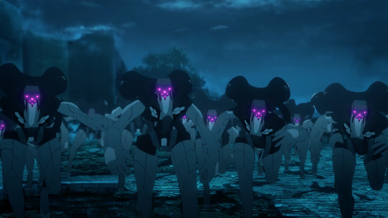 As for the antagonist, the automations did a good job in showing how ruthless they were, showing no pity whatsoever when one of automations killed humans whom they referred like objects that can be thrown away. Speaking about automations, I was dismayed to see this episode included more mature theme like sex robot, and it’s even more disgusting that the said robot has a terrible design with terrible CG and shown to kill the humans after he had sex with them, which made me cringed and wanna puke. Perhaps it’s to show how horrible the automations are, but I hope this won’t be a frequent thing because it really hurt my eyes.
