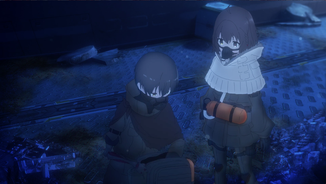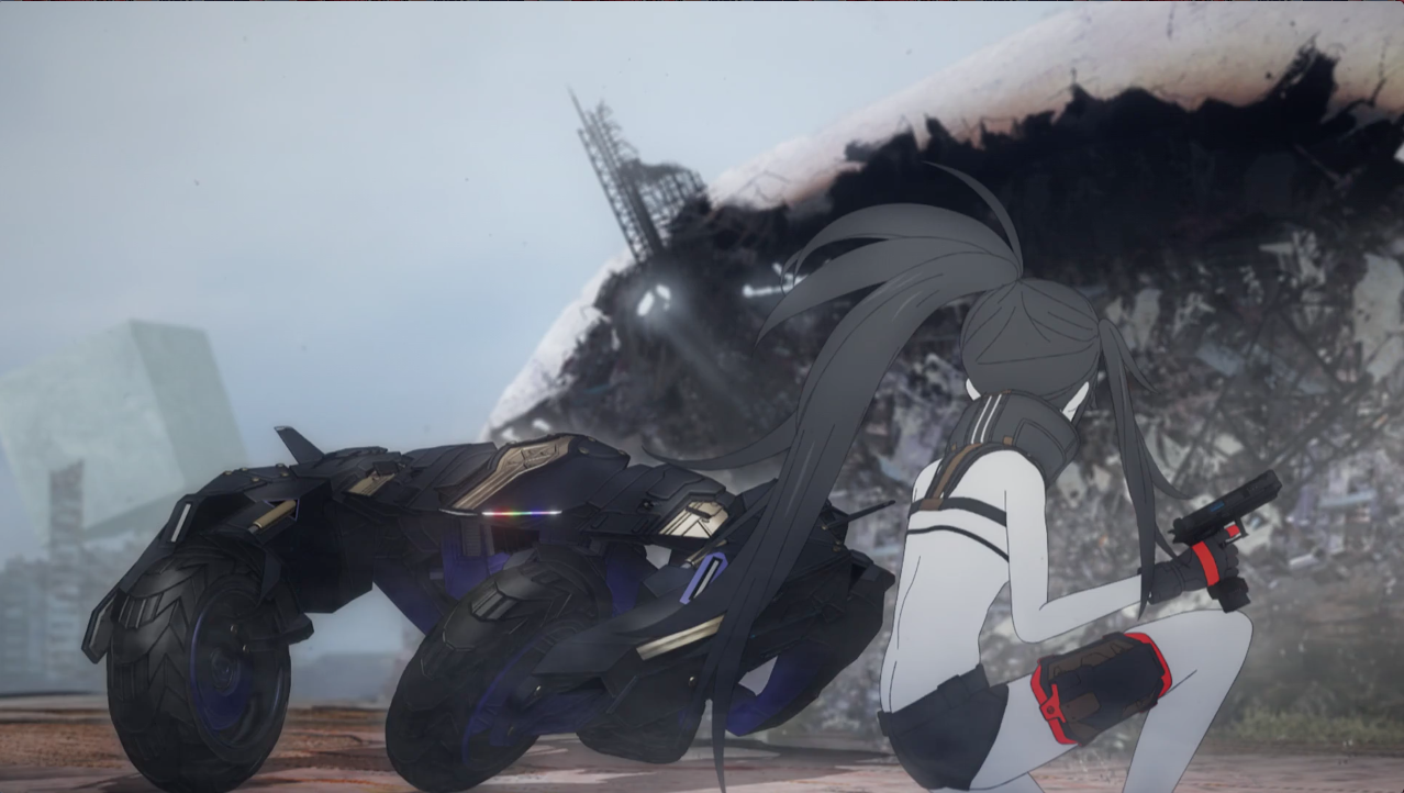 Black Rock Shooter: Dawn Fall, or I’ll just shortened it to Dawn Fall, has a premise that was familiar to me, who had played Black Rock Shooter the Game in PSP years ago. Similar with the Game, Dawn Fall took place in an apocalyptic Earth where humanoid robots called automation led by an A.I called Artemis, rebelled against humanity and laid waste to Earth. Pretty much the same with how in the Game, the Earth was laid to waste, only by aliens instead of robots. And just like the Game version of BRS, this BRS is the hope for all humanity to fight against the automations, but she suffered amnesia with the only memory she remembered was that she was from Lighthouse no. 8 and nothing more. And thus, this BRS, named Empress, became viewer proxy in finding out about the whole situation on Earth.