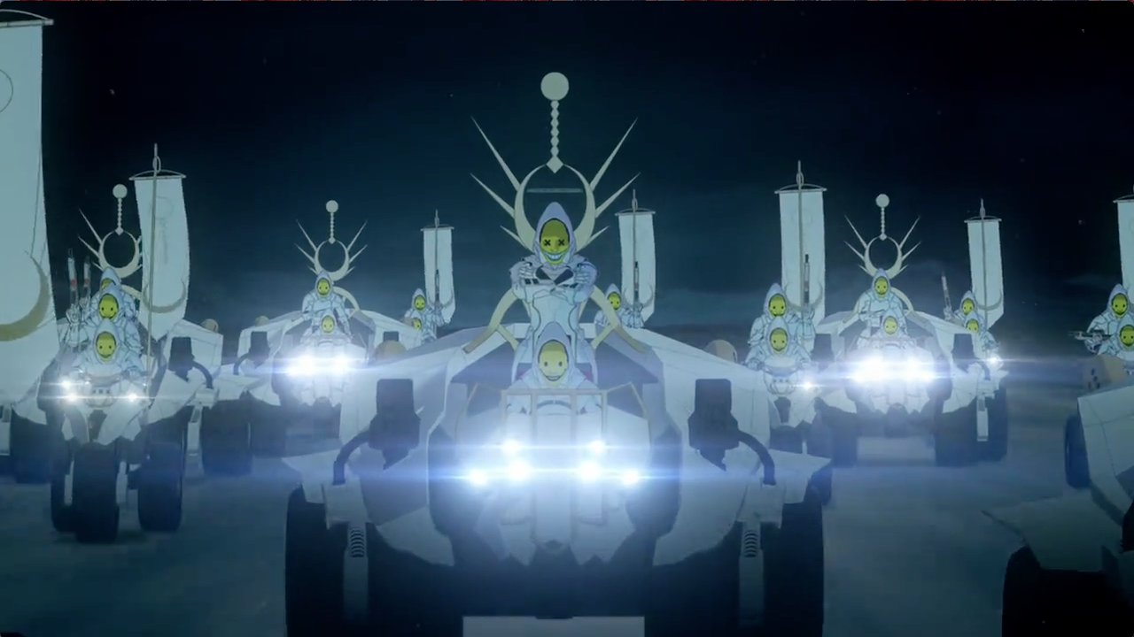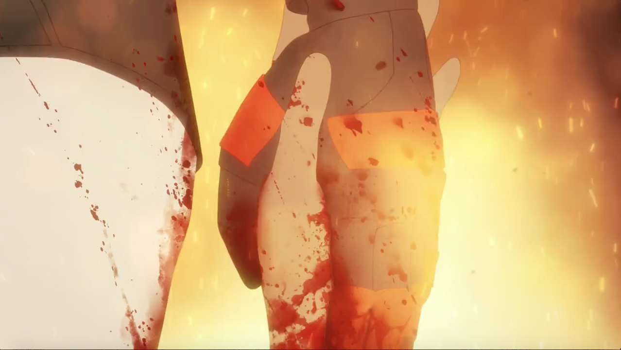 Fourth, is to show the element of tragedy that will develop Empress’ growth as a character. Just like how she saved the siblings in the previous episodes, Empress willingly lend a helping hand to Momiji, one of the ritual maidens who ran away and seek help to rescue her friends. The rescue mission wasn’t easy as Empress and her crew must not only deal with the Artemis troops, but also Dead Master who was hellbent in killing Empress. Ironically, Dead Master’s attempt to kill her also helped them in a way because she destroyed their enemies who got in her way, thus, allowing Empress and Colonel to stop the cargo that held the captive girls. Unfortunately, in a cruel twist of fate, the male automation has set up a bomb within the cargo that kill all the girls, including Momiji, just as they felt they have been saved. What remains of the girls was only Momiji’s arm that Empress grabbed seconds before explosion, but was too late to pull her out, leaving Empress distraught.
