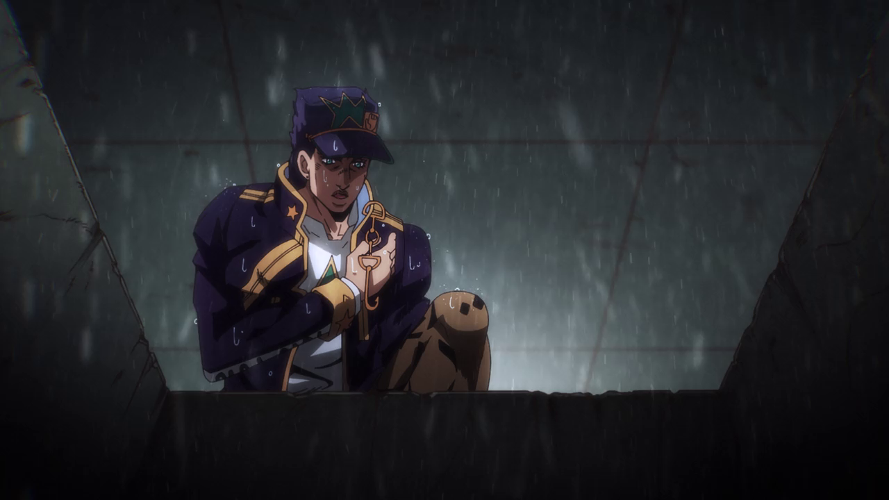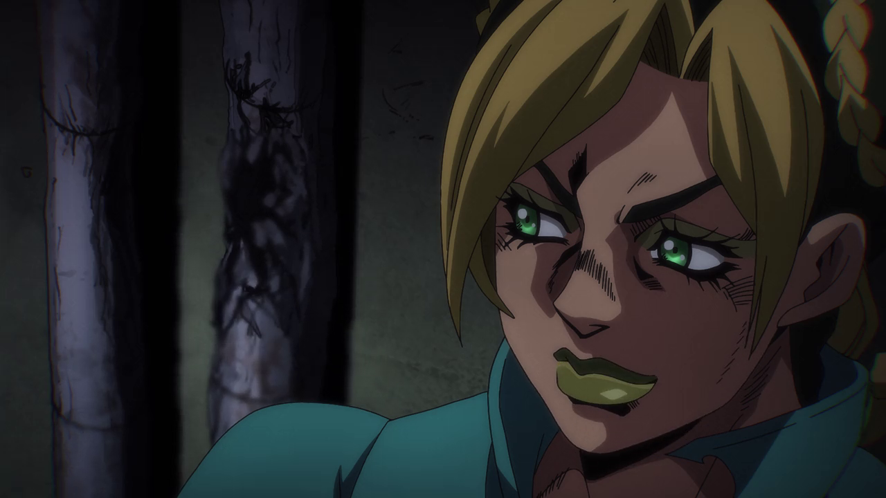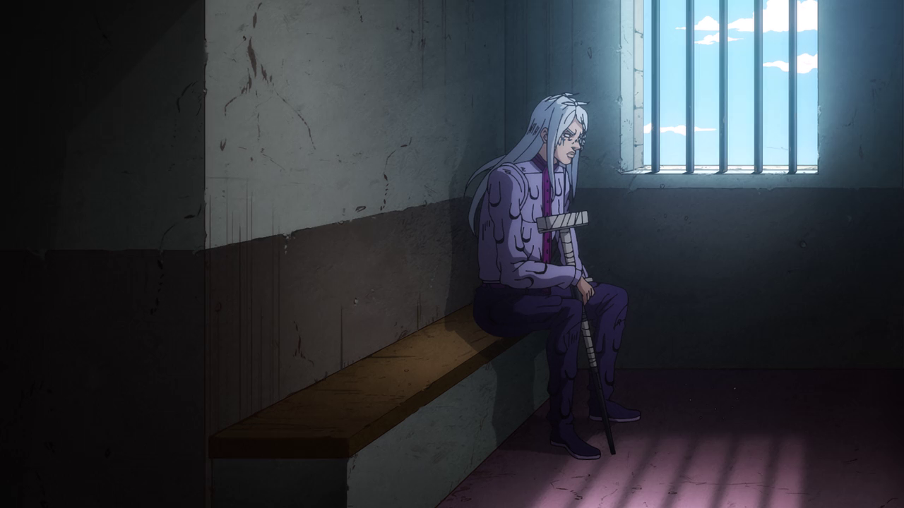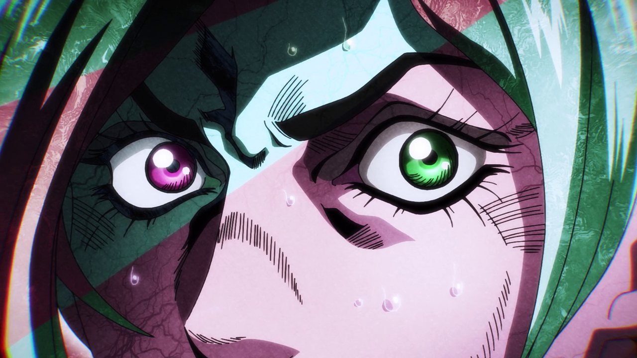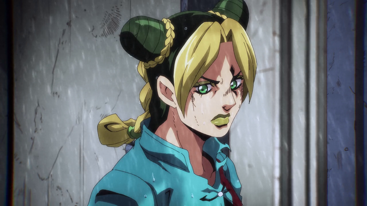 In typical Jojo fashion, things have taken a turn for the weirder. Jolyne went after the child and managed to take down Johngalli A’s stand, using a trick with the gas pipe. It seemed like everything was settled, but things get strange quick when the child suddenly disappears from the room, Jolyne sees Johngalli’s in the actual room, and the fact that Jotaro has no idea what she’s talking about when it comes to literally everything that’s happened to them so far. Turns out, the second she stepped into the visitation room is the second they walked into his trap. Just like the child said, don’t go in the visitation room. Jolyne wakes up to this…slimy melting weirdness. I really was curious how they would adapt this part because of how weird and gross it is, but oh my god the sound effects make me nauseous. It’s just this really gross goopy sound that I DO NOT like listening to so the faster Jolyne or Jotaro can wake up and get themselves out of this weird room, the better. Dx