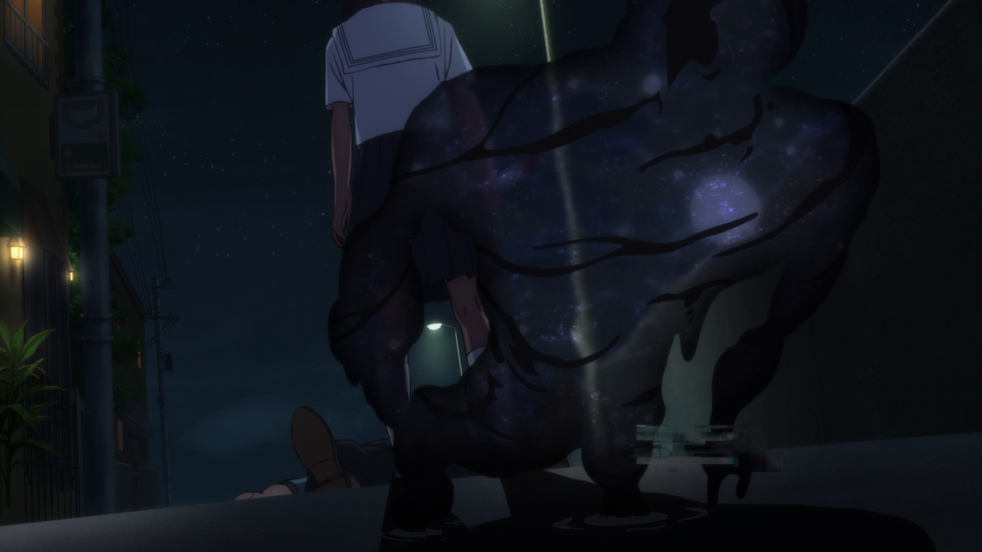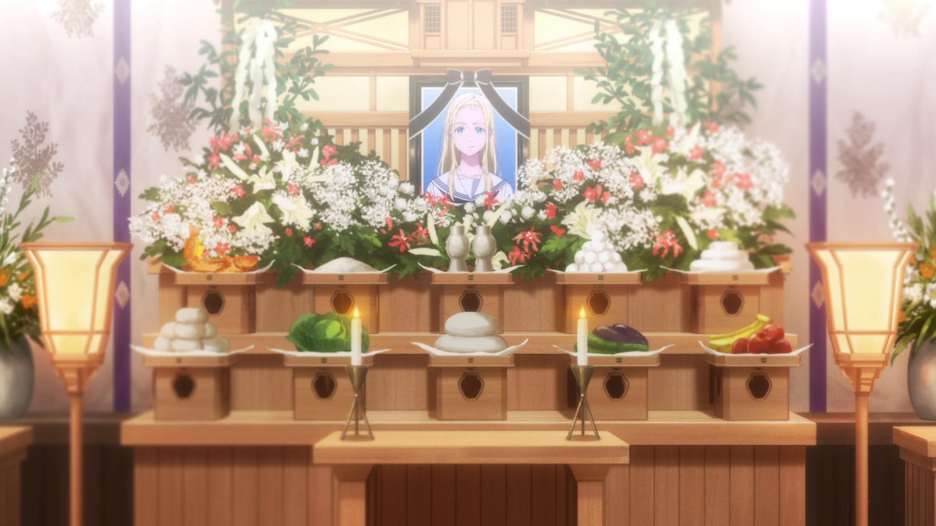 We finally get to see how the Shadows work and it makes the funeral scene even more strange. When creating a Shadow copy, there is a bright flash of light similar to a camera. The sound effect is even like a camera. When making the original disappear, there is another flash of light but a little different. The flash of light we see at the funeral was the same as the one where a Shadow is made, so it begs the question: Who was copied? There were so many people at the funeral that it could have been anyone, and it also means that there was a Shadow person there who had made the copy of someone in there! Was it Mio, was it the little girl, was it someone else? It could even be the glasses woman herself since she was there at the funeral. I love that this anime doesn’t really make anything obvious like a certain other anime airing this season…