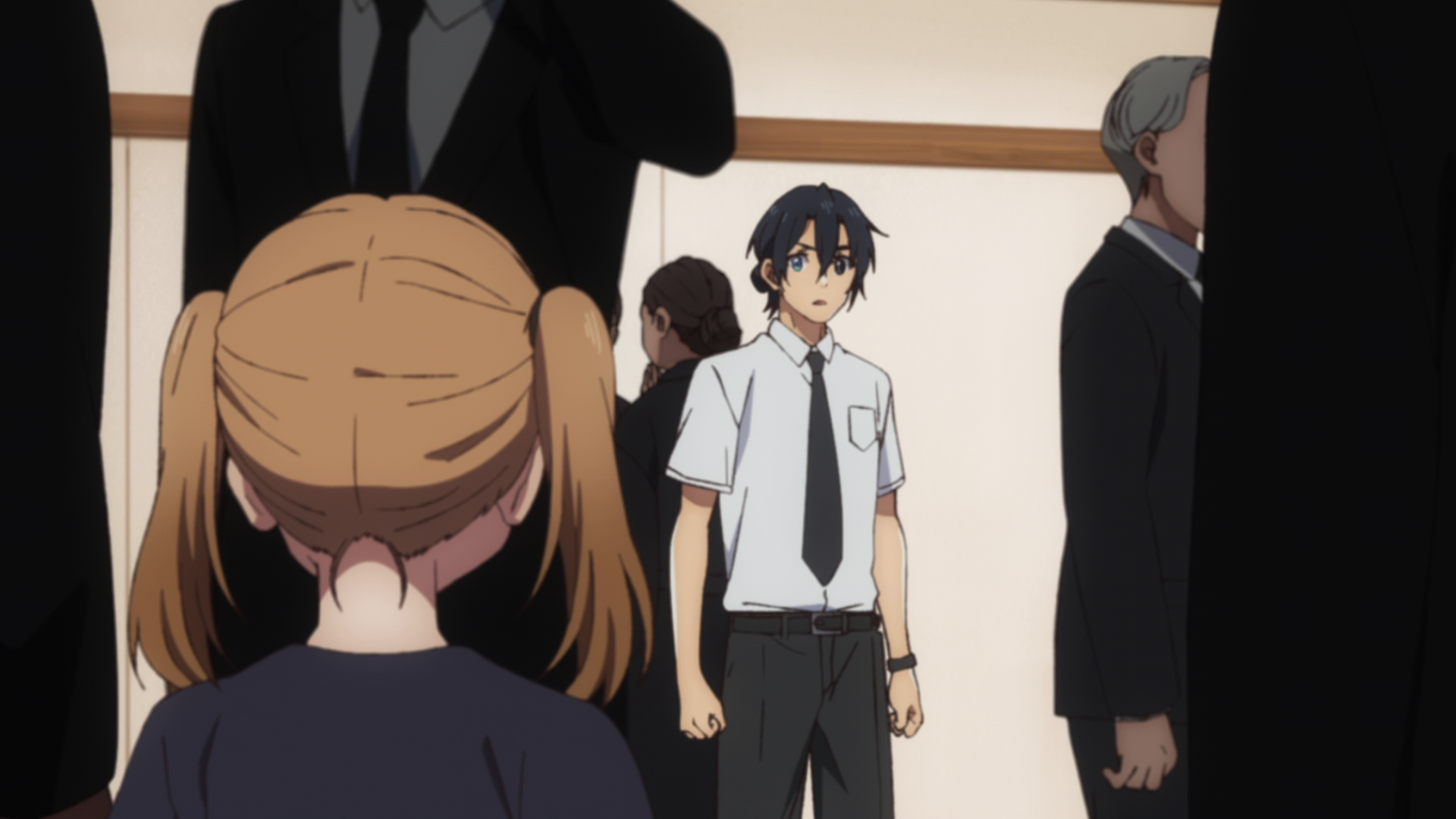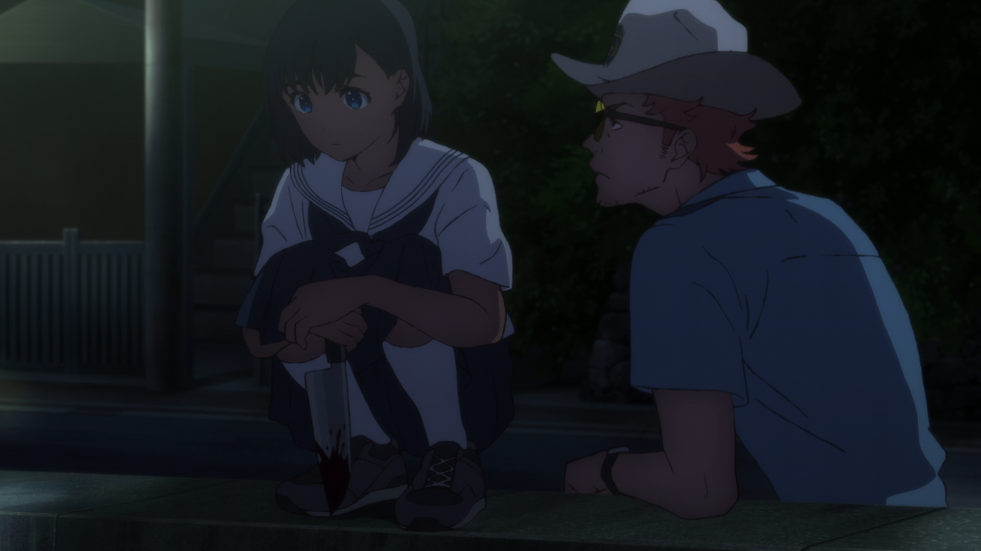 Shinpei not even realizing that one of his eyes is a different color was very strange. We as an audience knew this detail about him obviously, but with anime you would think it was just a stylistic choice. But upon this episode, it really doesn’t seem like it now. He seemed genuinely shocked and confused that his eye was a different color, and Shadow Mio’s words before Shinpei’s death insinuates that the Shinpei who is our main character right now is possibly a Shadow? Could it be the reason that he’s in this time loop phenomenon? There is also the glasses woman that Shinpei has met. We’ve seen a lot of her in this episode and she’s definitely in on this Shadow phenomenon, whether she’s a time looper or not. She already seems to know what they are and is busy investigating them, and it’s interesting that she was there specifically at the funeral. Of course with this phenomenon happening on the island, you can say that any one of the people in the room during the funeral is a suspicious suspect. I mean, we already know that Mio has her own Shadow, and apparently Ushio did as well. But we get another hint that Shinpei may be a Shadow when the glasses woman remarked “It’s right there among them.” when she had her eyes on Shinpei when he was speaking to the little girl’s family. Sure you can say that she was maybe talking about the little girl, but the framing on the shot had Shinpei in the center so it makes things even more suspicious. If Shinpei were a Shadow, it makes you wonder why he’s different from the others and why he’s in this situation in the first place.